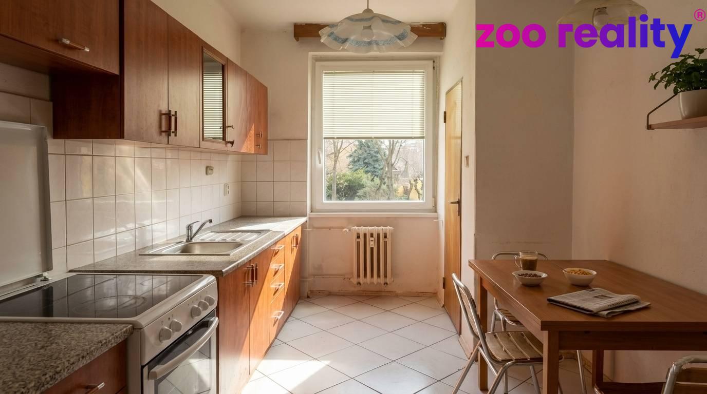 Nabízíme k prodeji byt v osobním vlastnictví o dipozici 3+1 s garáží, který se nachází ve druhém patře zděného domu s výtahem. Byt je v původním stavu a je umístěn ve velmi žádané lokalitě na konci neprůjezdné ulice. Parkovat lze u domu, nebo ve vlastní garáži, která je součástí prodeje a je u místěna v přízemí domu s vjezdem přímo z ulice. Byt se skládá ze tří neprůchozích pokojů, které mají samostatné vstupy z prostorné chodby. Dále je zde koupelna, samostatné WC a komora. Kuchyně a spíž je umítěna vedle obývacího pokoje. Obývací pokoj a zadní pokoj má vstup na velkou lodžii. Rozloha bytu bez započtení lodžií a sklepa činí 87 m2, celková užitná plocha bytu je 98,47 m2. Plocha garáže je 19 m2. Jedná se o velmi klidnou lokalitu s dobrým dopravním spojením a dosahem občanské vybavenosti. Centrum města je vzdáleno 10-12 minut pěší chůze.