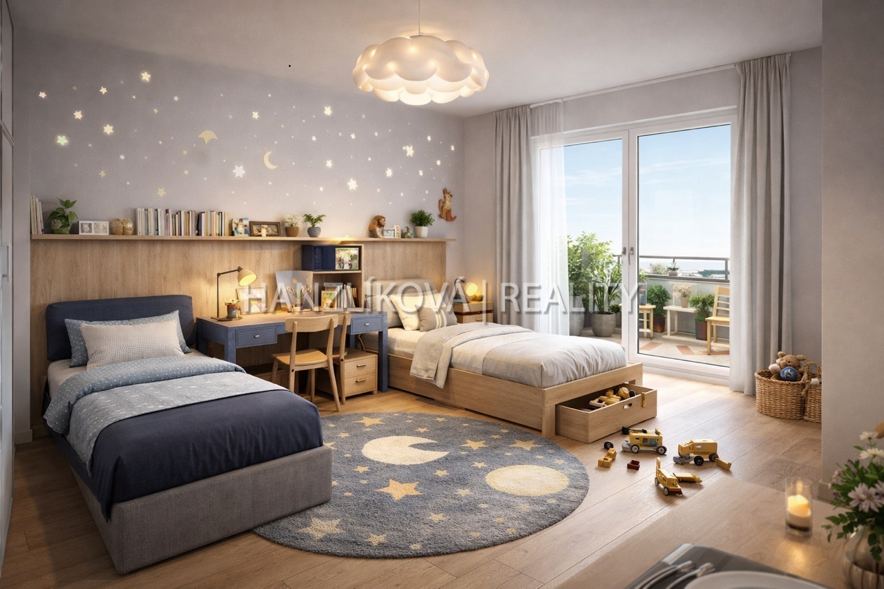 Tento byt je ideální volbou pro rodinu, která hledá dostatek prostoru, soukromí a komfortu. Orientace na východ zajišťuje příjemné ranní světlo a velkorysá terasa, která se rozprostírá po celé délce bytu, přináší jedinečný prostor pro každodenní život – ranní kávu, dětské hry i večerní posezení. Navíc je přístupná téměř ze všech obytných místností.