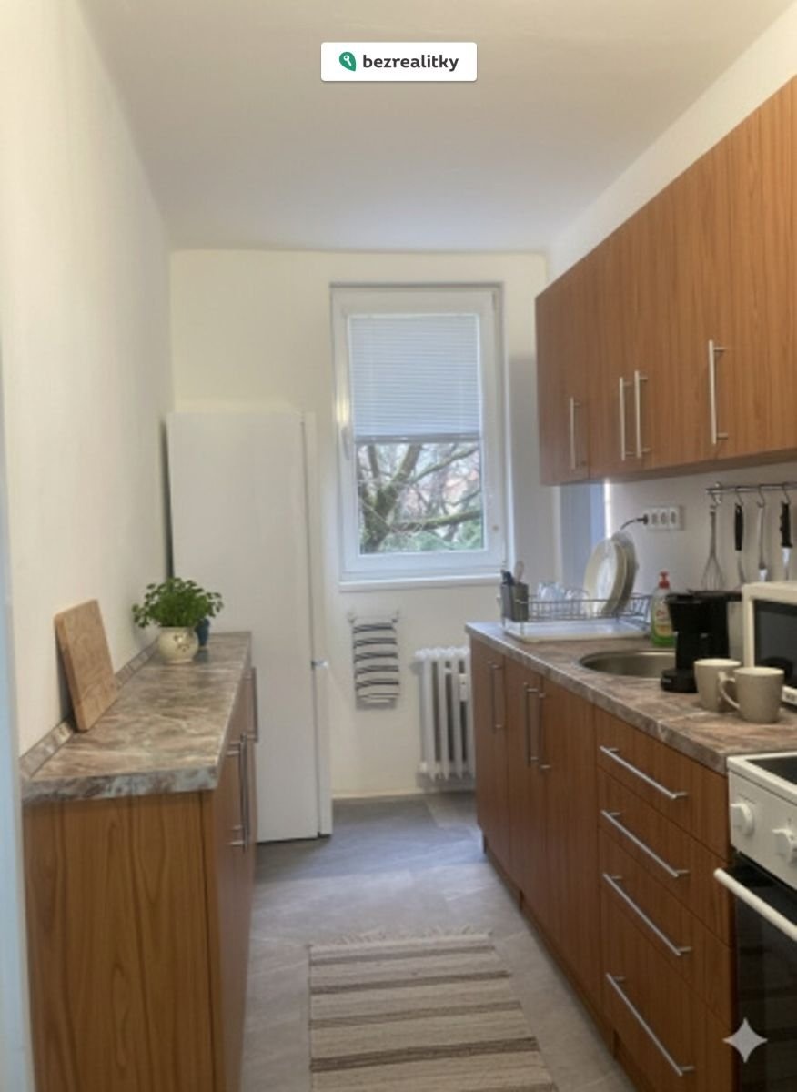 Byt se prodává částečně zařízený - zůstává kuchyňská linka se sporákem, digestoří, lednicí a pračka. Na podlaze je lino, pod kterým jsou původní parkety. Vytápění je ústřední.