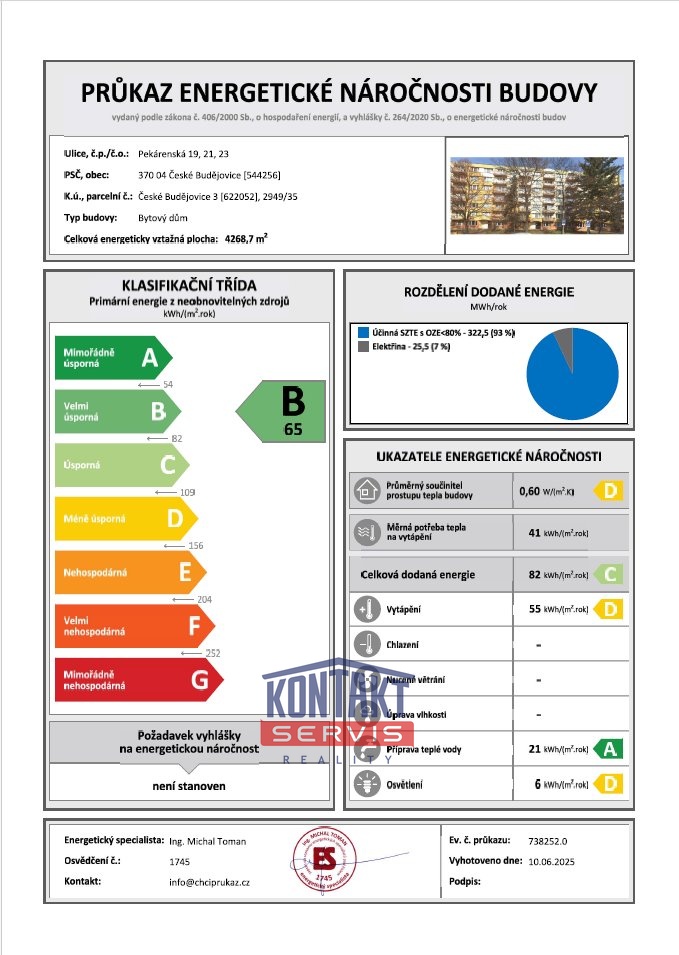 Ukazatel energetické náročnosti budovy:65 kWh/m²