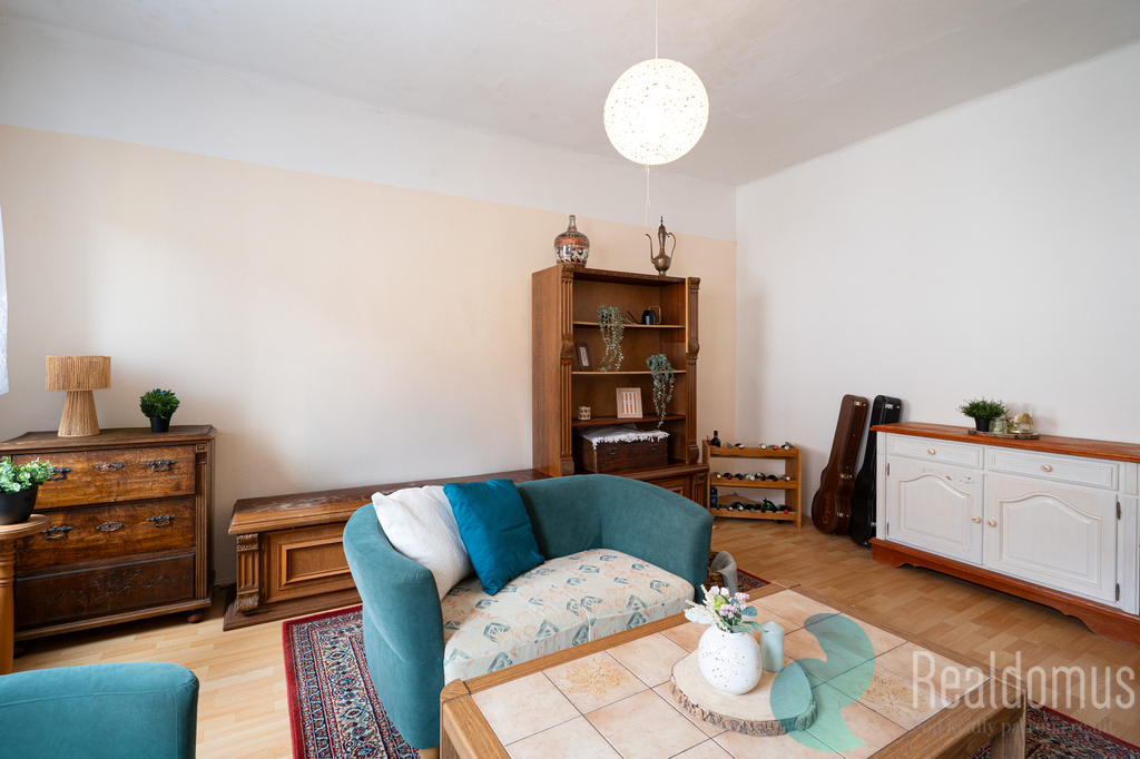 1.NP byt 4+1 (92 m2), který prošel rekonstrukcí zhruba před dvaceti lety. Disponuje kuchyní, prostorným obývacím pokojem, ložnicí, dvěma menšími pokoji a koupelnou.