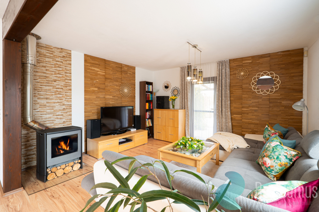 Dům je vytápěn elektrickým kotlem, v místnostech jsou radiátory a v koupelnách topné žebříky. V koupelně v podkroví je instalováno podlahové vytápění. Krbová kamna umístěná v přízemí v hlavní obytné místnosti vytvářejí nejen příjemnou atmosféru, ale poskytují také možnost nezávislého topení, které oceníte především v přechodových obdobích, kdy je příjemné si přitopit, ale není nutno zapínat centrální vytápění. U domu je plynová přípojka, která poskytuje možnost napojení topného systému na tento zdroj vytápění. K dispozici je elektrická přípojka 230 V i 400 V, přičemž 400 V je vyvedeno také do garáže.