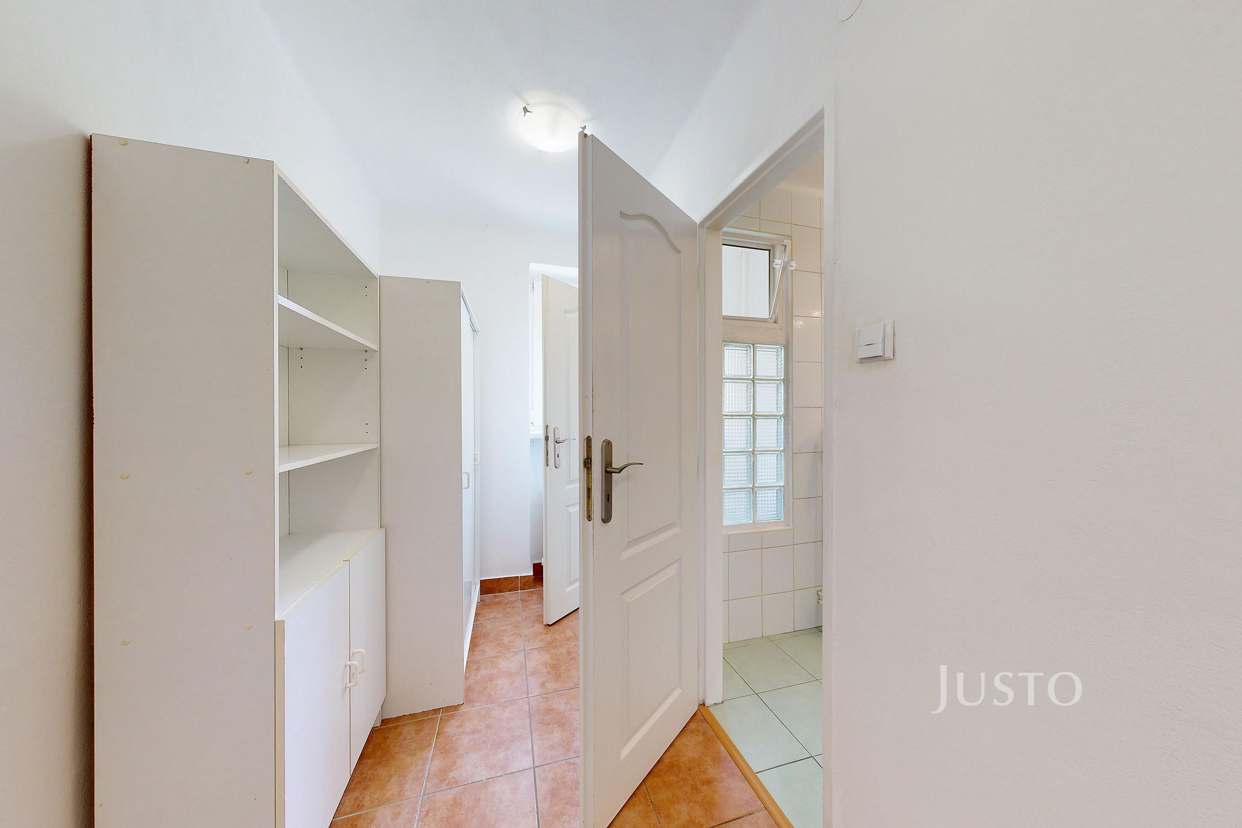 V chodbě je Vám k dispozici menší úložný prostor ve formě skříně a drobné skříňky s poličkami. Z chodby se dostáváte do koupelny vybavenou vanou a pračkou a také na toaletu. V těchto prostorách vás chlad od nohou v zimě nepotrápí a to díky podlahovému vytápění, které zde majitel při rekonstrukci zajistil.