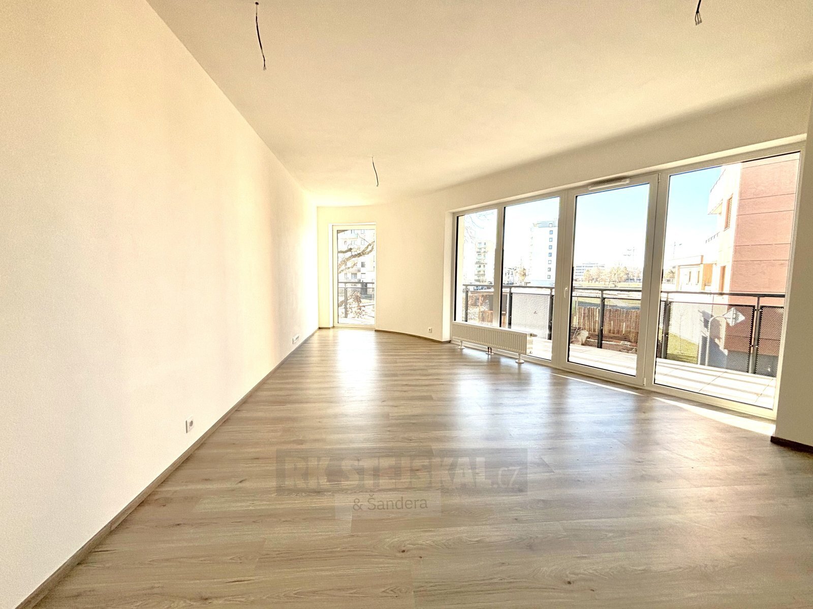 Byt je řešen atypicky, s mimořádným citem pro eleganci a funkčnost. Po vstupu vás přivítá předsíň, kde bude instalována vestavěná skříň a je zde také prakticky vymezený prostor pro umístění pračky a sušičky. Koupelna je sladěna do stylových neutrálních tónů a vybavena vším, co moderní bydlení vyžaduje – vana, toaleta a zrcadlo. Dále prostorná samostatná ložnice s připravenými zásuvkami umístěnými prakticky v dosahu budoucí postele. Dominantou bytu je výjimečně řešený obývací pokoj, který díky velkorysé prosklené ploše nabízí nevšední pocit prostoru, dostatek denního světla, se vstupem na prostorný balkon o ploše 13,3 m², ideální pro venkovní posezení a relaxaci. Kuchyňský kout s plně vybavenou kuchyní včetně spotřebičů – lednice, vestavná trouba, mikrovlnná trouba, myčka nádobí, digestoř. Součástí pronájmu je také parkovací stání - spodní lift parker, a možnost užívání společné kolárny.