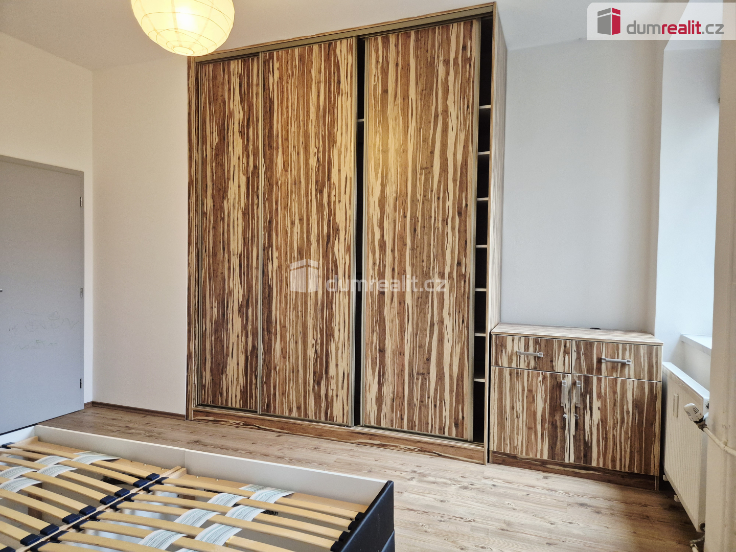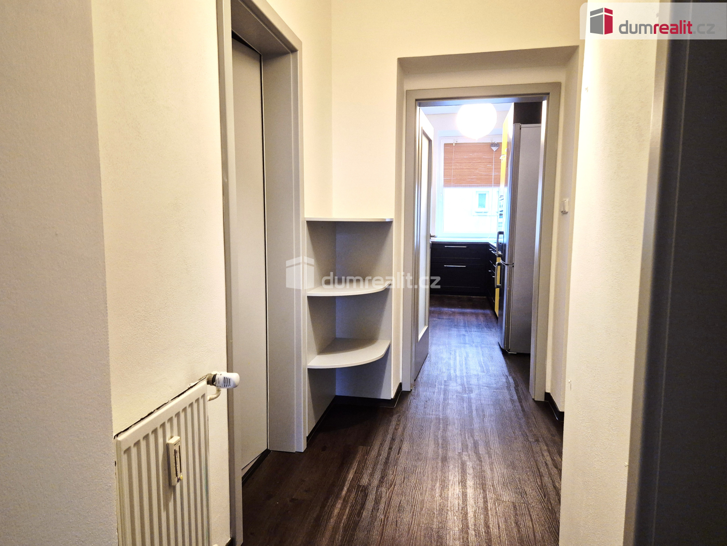 Jedná se o pěkný byt po rekonstrukci, který nabízí obývák o 21,2 m² s kuchyňským koutem, vybaveným el. komb. sporákem, digestoří, myčkou a lednicí, chodbu s komorou a přístupem do koupelny o 6,1 m² se sprchovým koutem, umyvadlem, WC a pračkou a dále ložnici o 18 m² s vestavěnou skříní a dvojpostelí bez matrací/e.