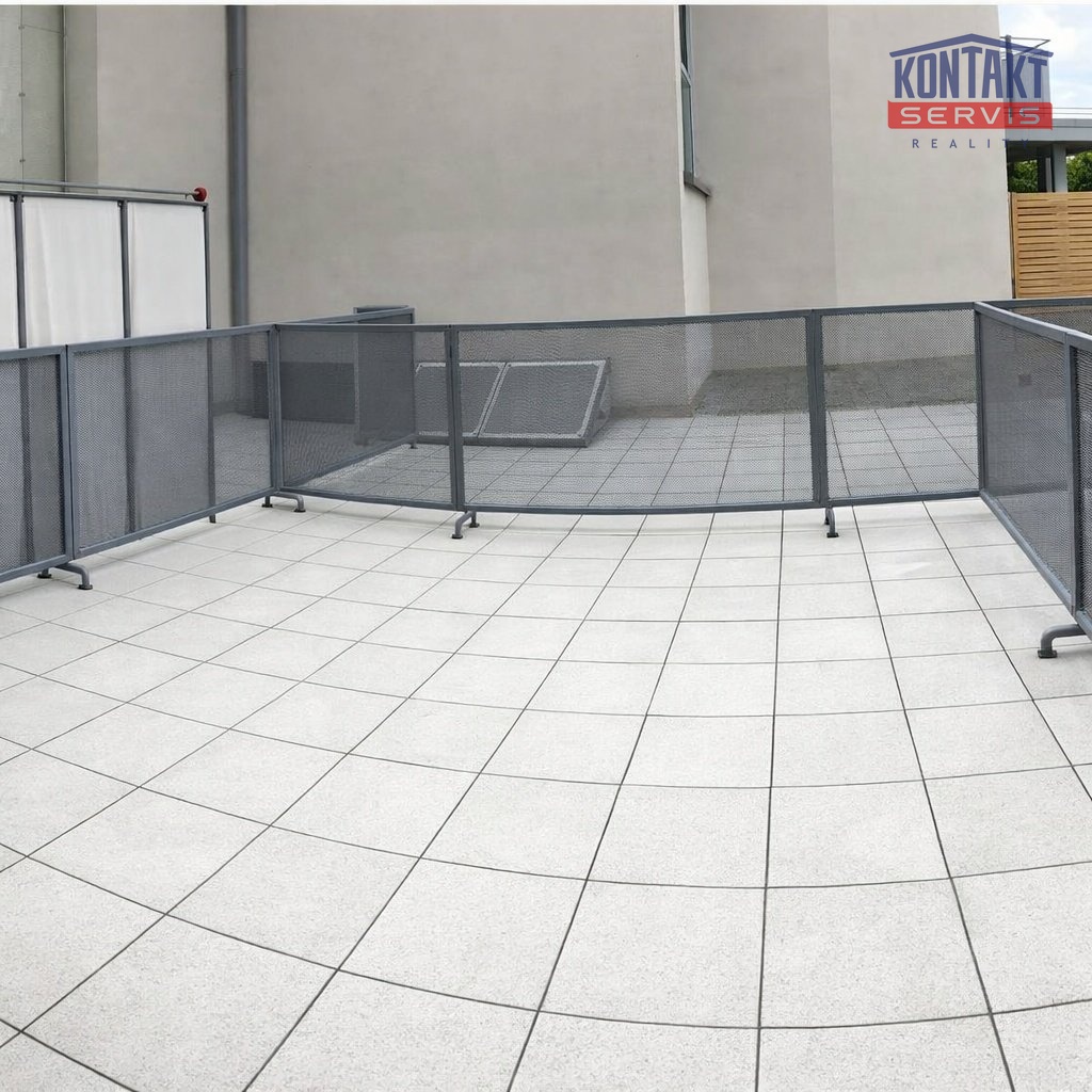 Dominantou bytu je prostorná terasa o výměře 15 m², která výrazně rozšiřuje obytný prostor a nabízí ideální místo pro relaxaci a posezení.