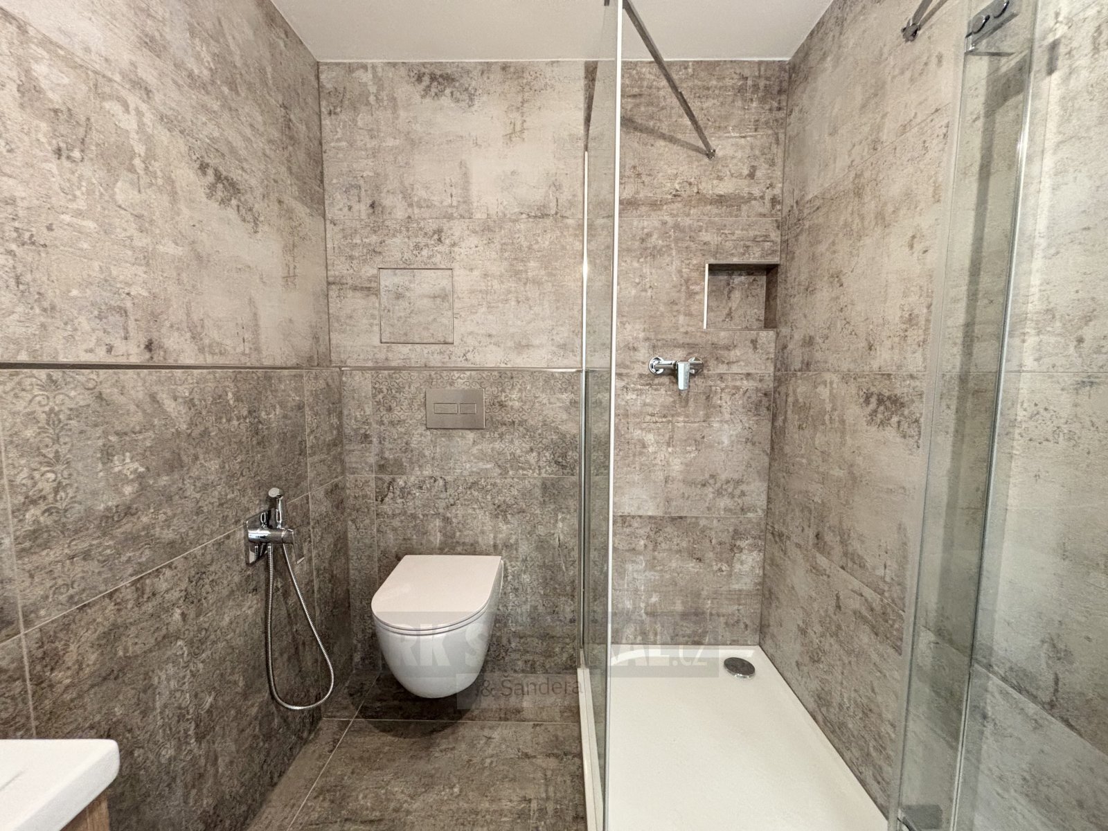 Byt je navržen s mimořádným důrazem na eleganci, funkčnost a každodenní komfort. Po vstupu vás přivítá prostorná předsíň s dostatkem místa pro velkou šatní skříň i další úložné řešení. Koupelna je provedena ve velkoformátovém obkladu a nabízí kompletní vybavení – prostorný sprchový kout, toaletu, designové zrcadlo s úložným prostorem a prakticky vymezený prostor pro pohodlné umístění pračky se sušičkou. Ložnice je díky jižní orientaci příjemně prosvětlená, působí vzdušně a má promyšleně připravené zásuvky pro komfortní uspořádání lůžka. Dominantou bytu je velkorysý obývací pokoj, který propojuje moderní kuchyni kompletně vybavenou spotřebiči s obytnou částí a nabízí přímý vstup na jižně orientovaný balkon, ideální pro posezení a relaxaci. Součástí bytu je také prostorný sklep, k dispozici je společná kolárna a parkovací stání.