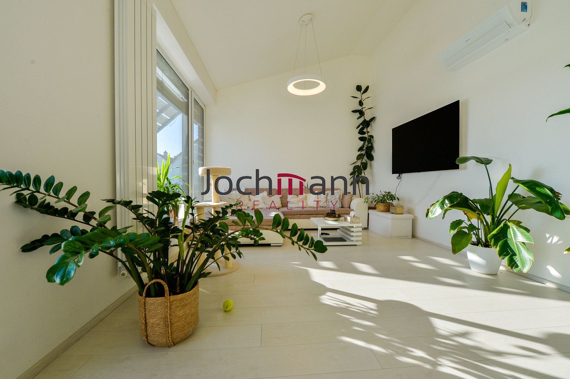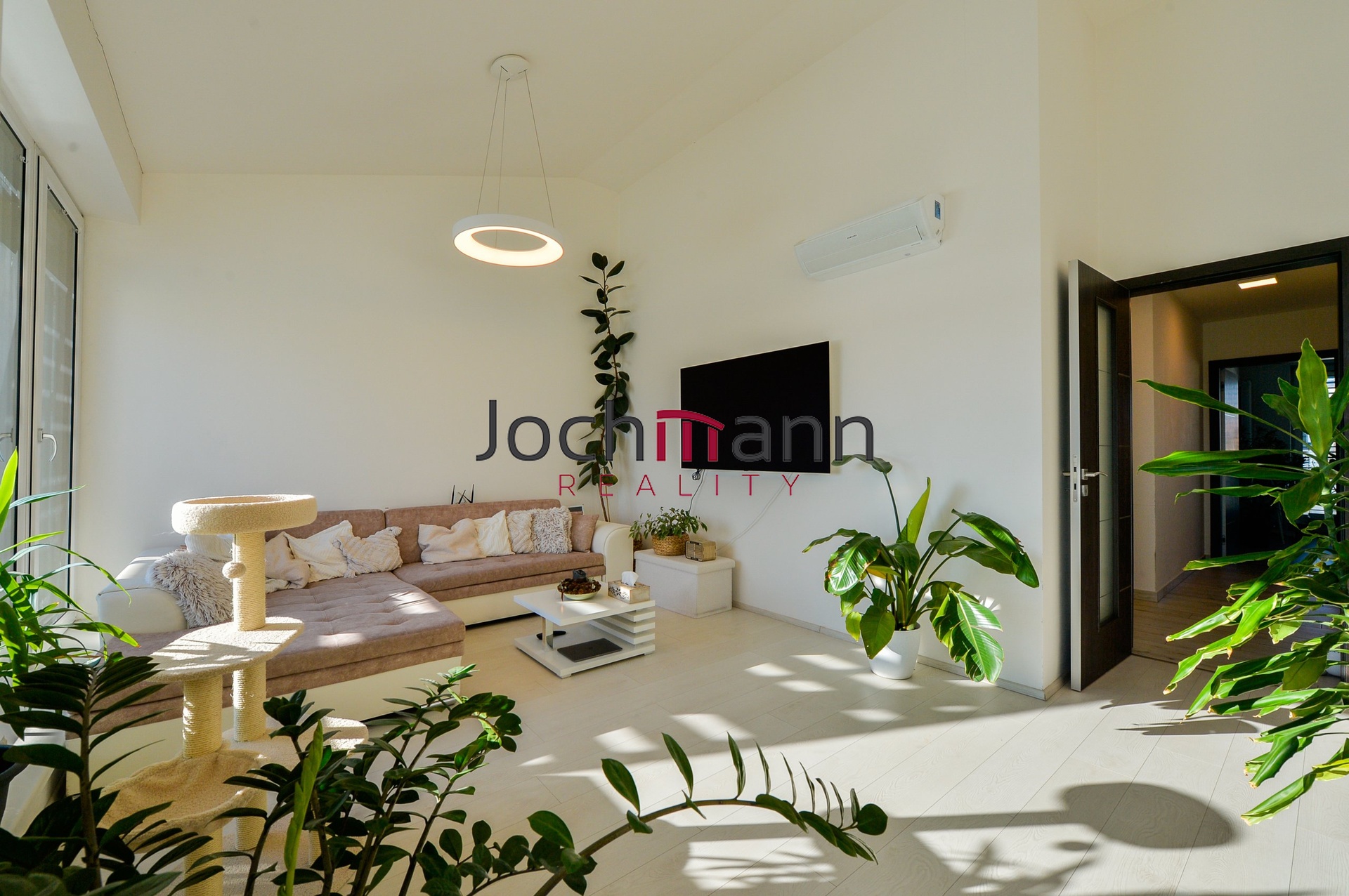 Provedení a zařízení bytu se celkově nese v nadstandardním stylu (kvalitní zpracování kuchyňské linky, perfektní spotřebiče, předokenní žaluzie, klimatizace, designové obklady v koupelně atd). Za příplatek 1.000,- Kč parkovací místo v kryté garáži přímo v budově. Vzhledem k charakteru posledního patra bude v bytě vždy krásný klid, při horkých dnech pak perfektně pomůžou klimatizační jednotky v kombinací s předokenními žaluziemi. Hlavní přidanou hodnotou tohoto bydlení je zejména perfektní lokalita s ideální docházkovou vzdáleností do centra dění, možnost parkování v kryté garáži, nadstandardní zařizovací předměty a prvky bytu, dvě terasy a celkově dobře řešená dispozice bytu. K dispozici od 01.03.2026. Více informací u makléře. Doporučujeme.