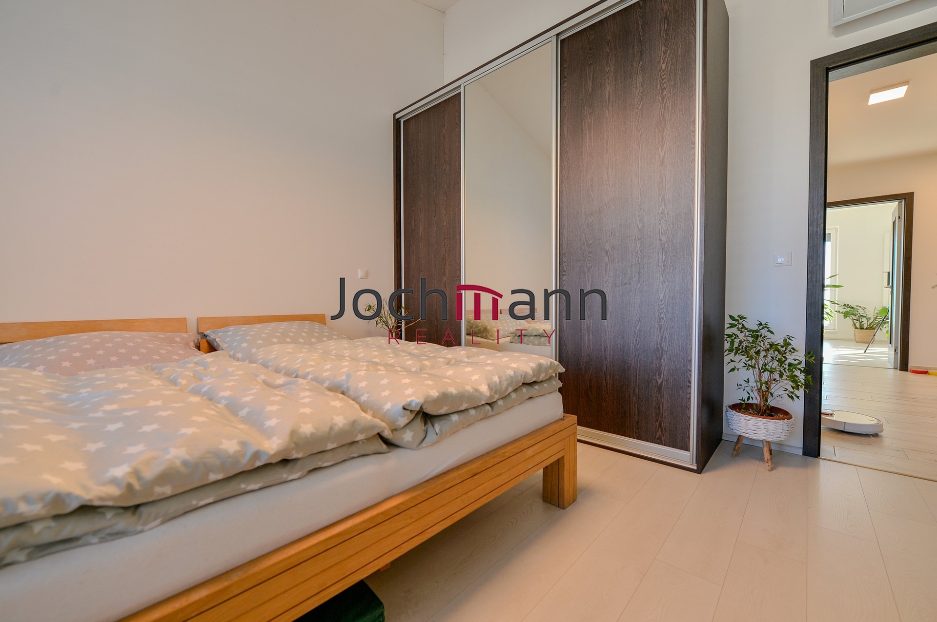 Krásně prosvětlený, klimatizovaný byt s nadstandardní podlahovou plochou a nádhernou terasou orientovanou na jih se nachází v posledním patře novostavby bytového domu s ideální dostupností do centra dění. Vnitřní dispozice bytu nabízí velkorysou vstupní halu, skvěle prostornou hlavní obytnou místnost s plně vybaveným kuchyňským koutem a výstupem na hlavní terasu, jižně orientovanou ložnici opět s výstupem na hlavní terasu, druhou ložnici orientovanou na sever - opět s výstupem na menší terasu, koupelnu s vanou a sprchovým koutem, samostatně oddělenou toaletu s umyvadlem a v neposlední řadě pak dvě samostatně oddělené místnosti - které lze využít jako dvě šatny či úložné prostory. Pro lepší porozumění vnitřní dispozice bytu doporučuji projít virtuální prohlídku nemovitosti, která je uvedena níže a je zároveň i součásti inzerce. Aktuální vybavení bytu nábytkem není součástí předmětu nájmu.