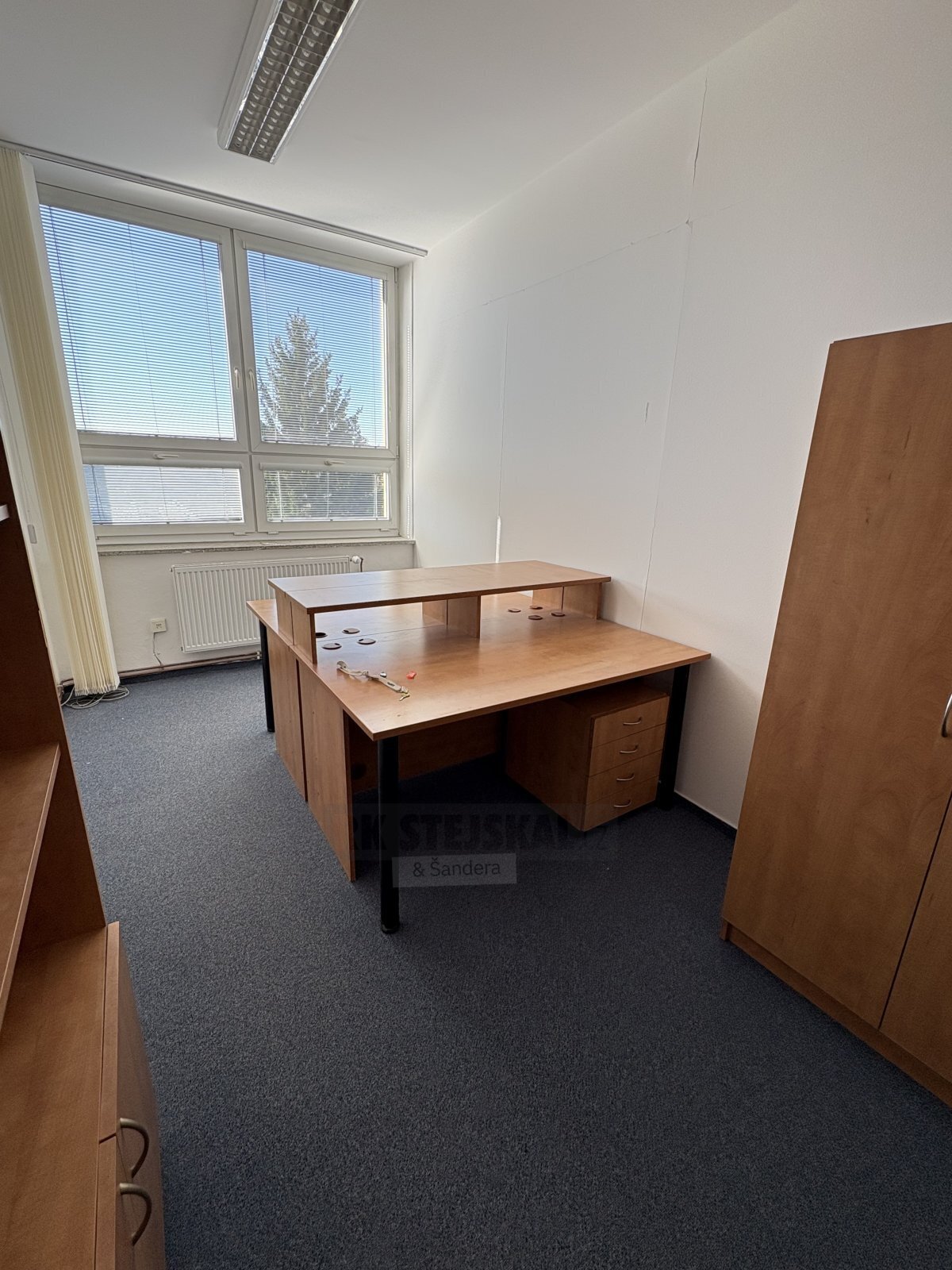 K pronájmu nabízíme kanceláře o celkové velikosti 35 m², tvořenou prostornou hlavní místností 19m² , na kterou navazuje druhá, menší kancelář 16m², obě místnosti jsou částečně vybavené nábytkem. Dispoziční řešení je praktické a umožňuje zachování potřebného soukromí.