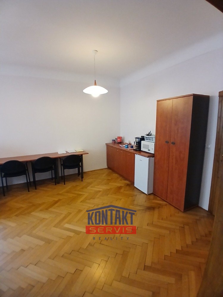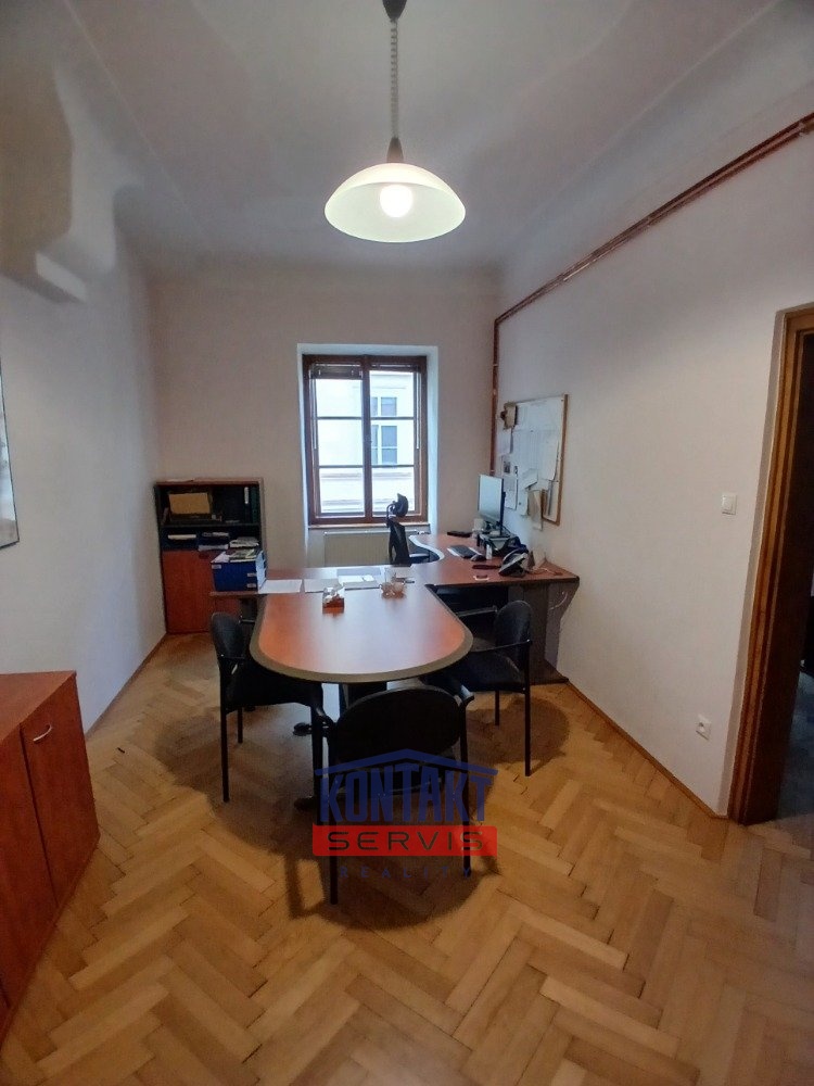 Nabízíme k pronájmu dvě vybavené kanceláře v atraktivní lokalitě v ulici Krajinská - České Budějovice. Situované jsou v prvním patře. Kancelář 1 má rozlohu 25 m² a kancelář 2 má 19 m², celková plocha činí 56 m². Prostory jsou kompletně vybaveny kancelářským nábytkem, minikuchyňkou s chladničkou a mikrovlnnou troubou. Součástí je koupelna s WC, předsíň. Vytápění je plynovým kotlem. Měsíční nájem 11.500 Kč měsíčně zálohy na sužby a energie cca 2 000 Kč. Kauce je 11.500 Kč. Provize realitní kanceláři ve výši měsíčního nájmu. Ideální pro menší firmu nebo sdílené kanceláře. V případě zájmu o prohlídku nebo další informace mě neváhejte kontaktovat.
