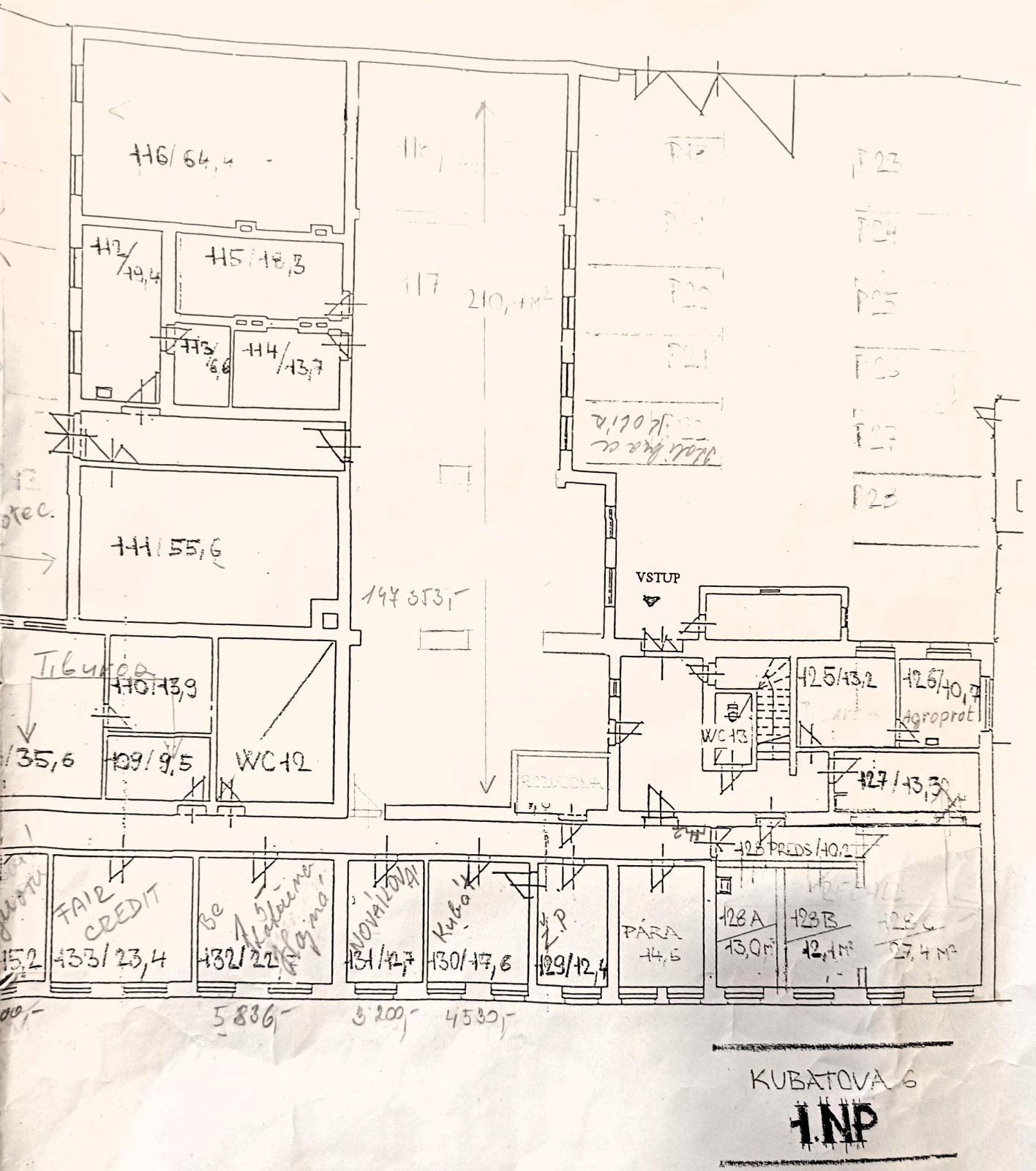 Kanceláře o ploše 55,6 m2, 210,4 m2, 13 m2, 12,1 m2, 27,4 m2