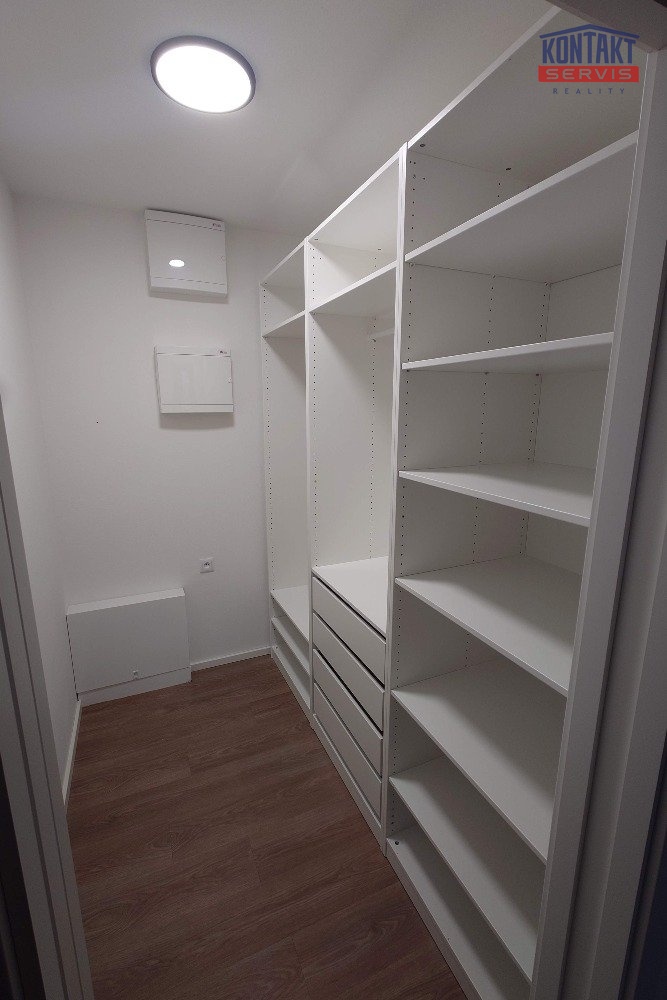 Interiér bytu působí velmi světlým a vzdušným dojmem a je navržen tak, aby poskytoval praktické a pohodlné bydlení. Srdcem bytu je luxusní kuchyňská linka s dostatkem úložného prostoru, která je součástí prostorného obývacího pokoje s kuchyňským koutem. Z obývacího pokoje se vstupuje na balkon s příjemnou západní orientací, ideální pro večerní posezení. Ložnice je vybavena postelí a prostornou vestavěnou šatnou. V předsíni pak naleznete moderní vestavěnou skříň. Koupelna je řešena se sprchovým koutem a WC.