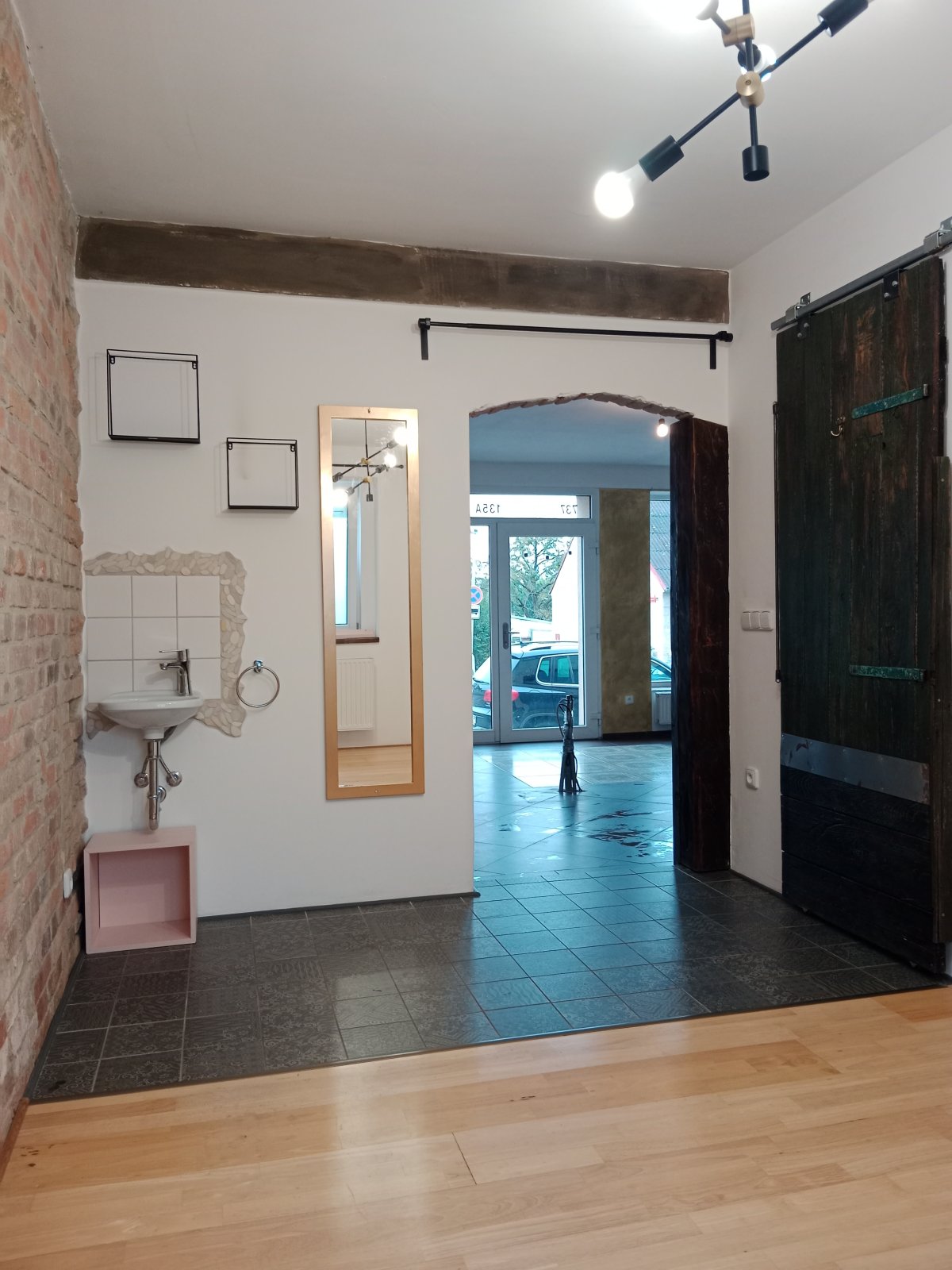 Tyto prostory byly naposledy využívány jako kadeřnictví, takže jsou vybaveny vším potřebným pro podobné využití. Disponují hlavní místností ( 36 m2), druhou menší místrností ( 13 m2 ) s WC a sprchou, druhým WC pro klienty ( 2,1 m2 ) a třetí technickou místností s kuchyňkým koutem ( 7 m2 ). Toto uspořádání umožňuje flexibilitu a přizpůsobení prostoru různým podnikatelským aktivitám.