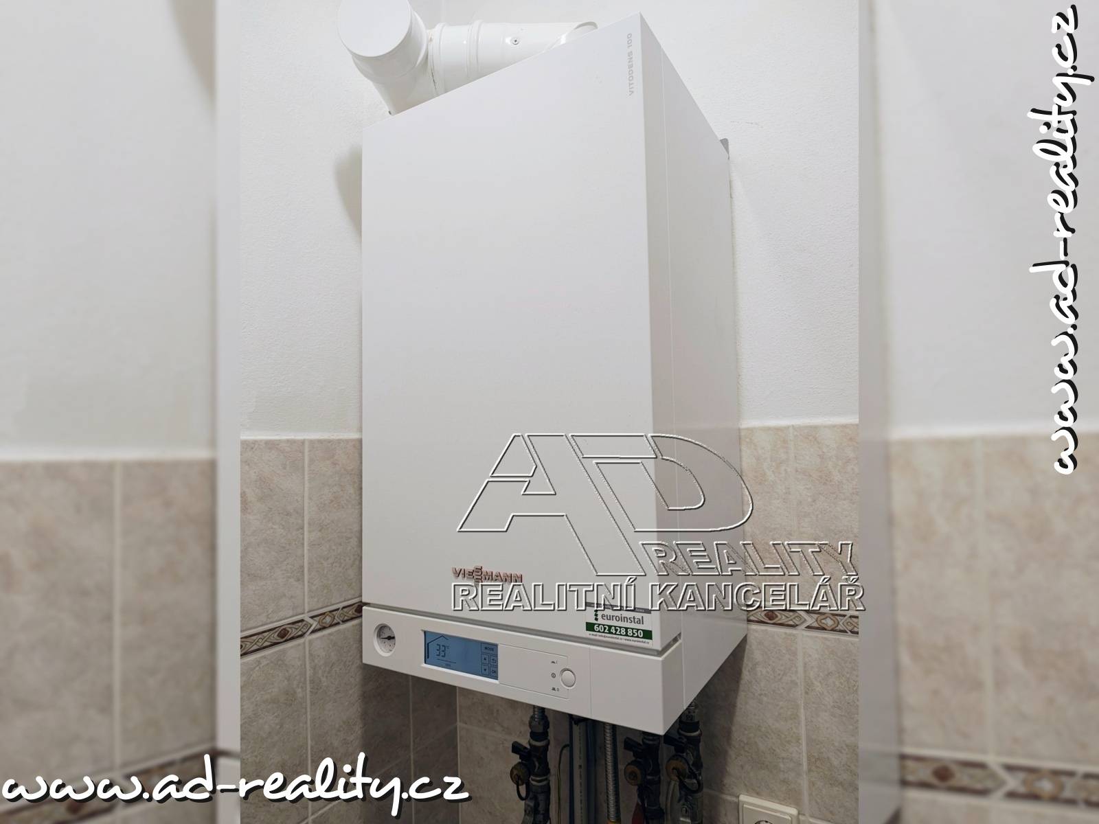 Topení: ústřední (radiátory), vlastní kondenzační kotel s ohřevem TUV, samostatné měření spotřeby studené vody (vodoměr), elektřiny (elektroměr) a zemního plynu (plynoměr). V bytě je možno připojit internet (Starnet).