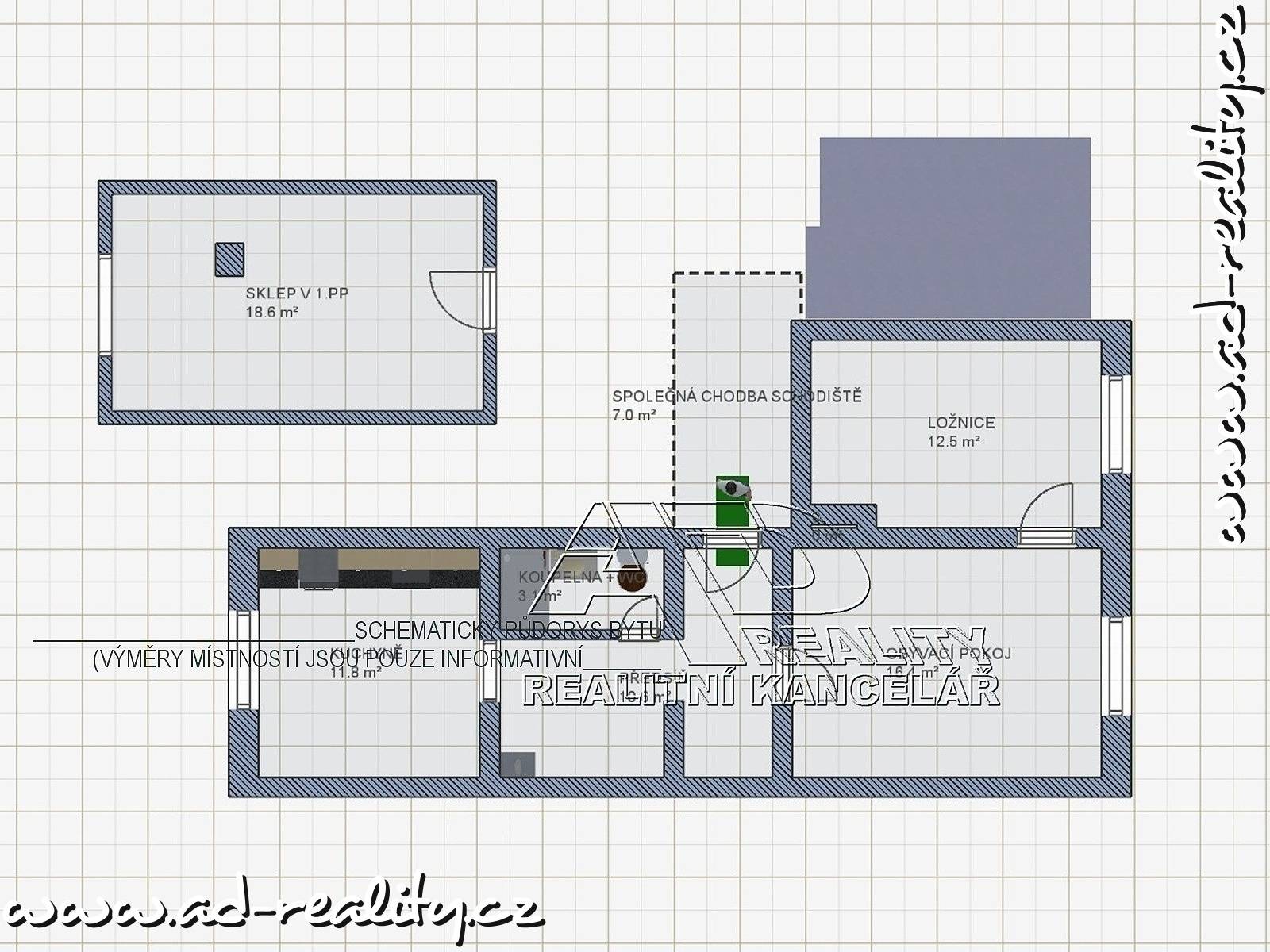 Společné prostory domu jsou čisté a průběžně uklizené. K bytu je k dispozici samostatný suchý sklep (pod uzávěrem) o výměře cca [18m2].