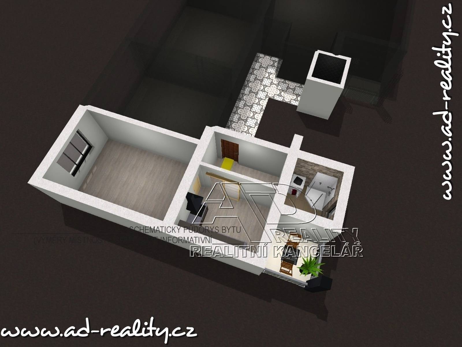 ►►[byt_04]► zděný byt velikosti 1+1 s balkonem, celková plocha bytu [47m2], podlahová plocha [40m2] + balkon [5m2] + sklep [2m2].