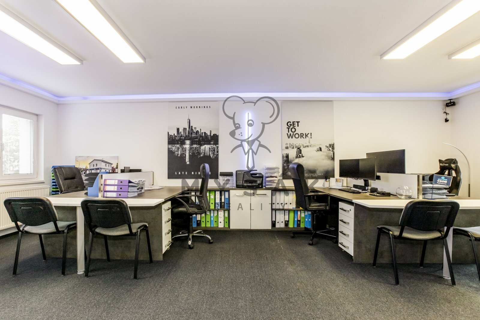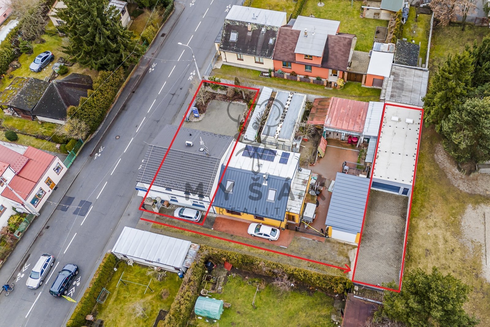Nabízím vám ke koupi zajímavý soubor nemovitých věcí vhodný jak k vlastnímu podnikatelskému záměru, tak i jako případná investice. Jedná se o dům, který v současné době nabízí kancelářské prostory v přízemí i v patře, které bylo nově vybudováno v roce 2015, s vyřešeným parkováním včetně legálního vjezdu přímo z ulice a před třemi lety nově postavenou garáží o podlahové ploše 80 m2 s navazujícím, zámkovou dlažbou, zadlážděným pozemkem o výměře 100 m2, který je možno rovněž využít k parkování. Přízemí i patro domu fungují odděleně. Každé má vlastní vstup, vlastní kondenzační plynový kotel, klimatizaci - tepelné čerpadlo, podružné měření vody i elektřiny a samostatný plynoměr pro každé z nich. Patro je možné bez dalších úprav využívat jako prostorný byt 2+kk, případně je možné ho snadno adaptovat na 3+kk, na což je vše plně připraveno. Dům je kompletně zateplený a náklady na jeho provoz jsou velmi sympatické. Majitel instaloval kamerový systém a zabezpečovací zařízení napojené na PCO, LED rampy uvnitř i z vnějšku objektu, dvě vjezdové automatické brány, jak na parkoviště vedle domu, tak u vjezdu ke garáži. Za zmínku určitě stojí i to, že parkoviště je obklopeno vzrostlými stromy magnolií a sakur, keři azalek a rododendronů. Jedná se o objekt na frekventovaném místě s různými možnostmi využití - od ordinací přes kanceláře firmy až po kombinaci vlastního bydlení a podnikání pod jednou střechou. V současné době je přízemí pronajato a je zde i výnos z pronájmu reklam umístěných na plotě. Informace o stávajícím i odhadovaném potencionálním výnosu vám rád sdělím po telefonu, případně prostřednictvím e-mailu. Patro zůstává kompletně zařízené tak jak vidíte na fotografiích. Nový majitel obdrží kompletní projektovou dokumentaci k rekonstrukcím i výstavbě garáže. Mezi přiloženými fotografiemi naleznete plánky obou podlaží a objekt si můžete i virtuálně projít. Pokud na tento inzerát narazíte na serveru, který nepodporuje virtuální prohlídky nemovitostí, tak odkaz na ni najdete na mých webových stránkách. Veškeré informace vám rád poskytnutu při osobní prohlídce objektu.