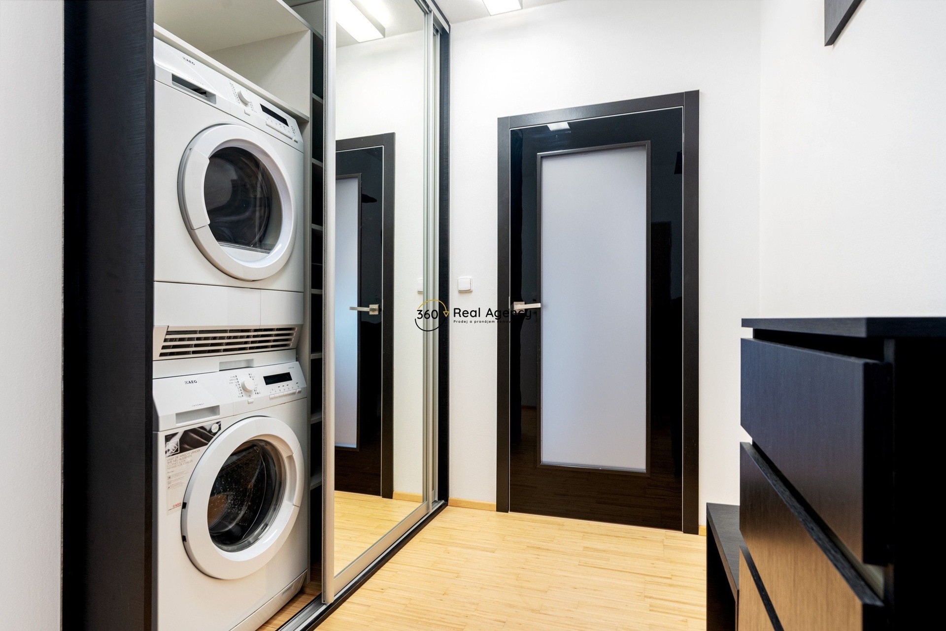 Srdcem bytu je velký obývací pokoj s kuchyňským koutem o 43,95 m², orientovaný do klidného vnitrobloku. Stejným směrem je situovaná i hlavní ložnice.