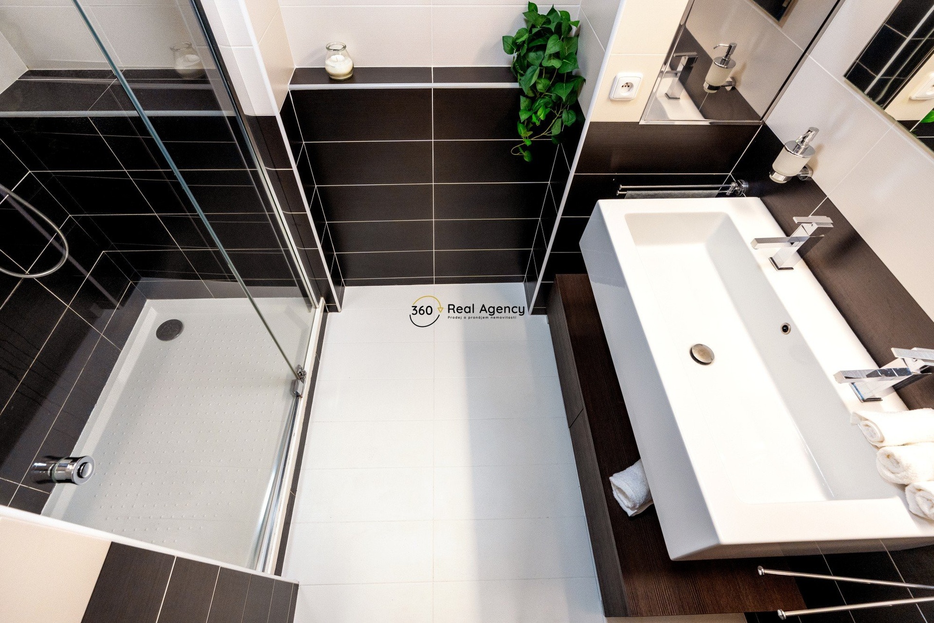 Celkový dojem podtrhuje vstupní předsíň (12,15 m²), koupelna (4,3 m²) a samostatná toaleta (1,95 m²).