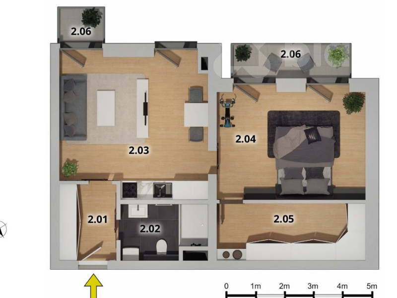 Byt se nachází ve 2. patře vilového domu s výtahem v nové moderní čtvrti Antico. Je prakticky členěný a dostatečně prostorný, takže i dispozice 2+kk nabízí komfortní bydlení. Samostatným zádveřím (s prostorem pro šatní skříň) vstupujete do hlavního obývacího prostoru, kde je vše připraveno pro kuchyňský kout i pro obývací část. Z obývací části můžete vyjít na balkon s krásným výhledem do vnitrobloku.