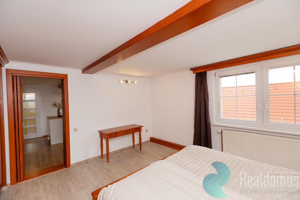 Realdomus zprostředkuje pronájem bytu v patře rodinného domu v klidné části Českého Brodu, v ulici Ruská. Tento rohový cihlový dům nabízí 2+kk o velikosti 50 m2 s terasou 19 m2. Dům je zateplený s plastovými okny se sítěmi. Vytápění plynem. Nainstalovaná i klimatizace na horké letní dny. Moderní interiér bytu zahrnuje vstupní chodbu, koupelnu se sprchovým koutem a WC, ložnici s velkou vestavnou skříní. Manželskou postelí. Kuchyň je plně vybavena, včetně myčky nádobí, pračky se sušičkou, elektrická varná deska a elektrická trouba, lednice s mrazákem. Nechybí ani mikrovlnná trouba.
