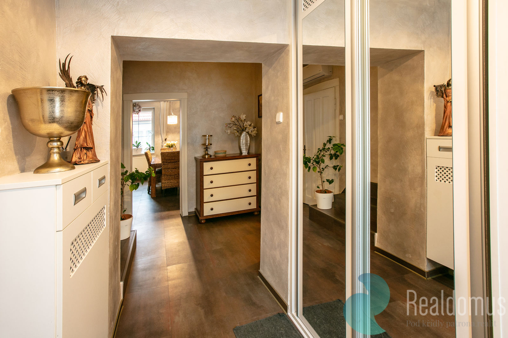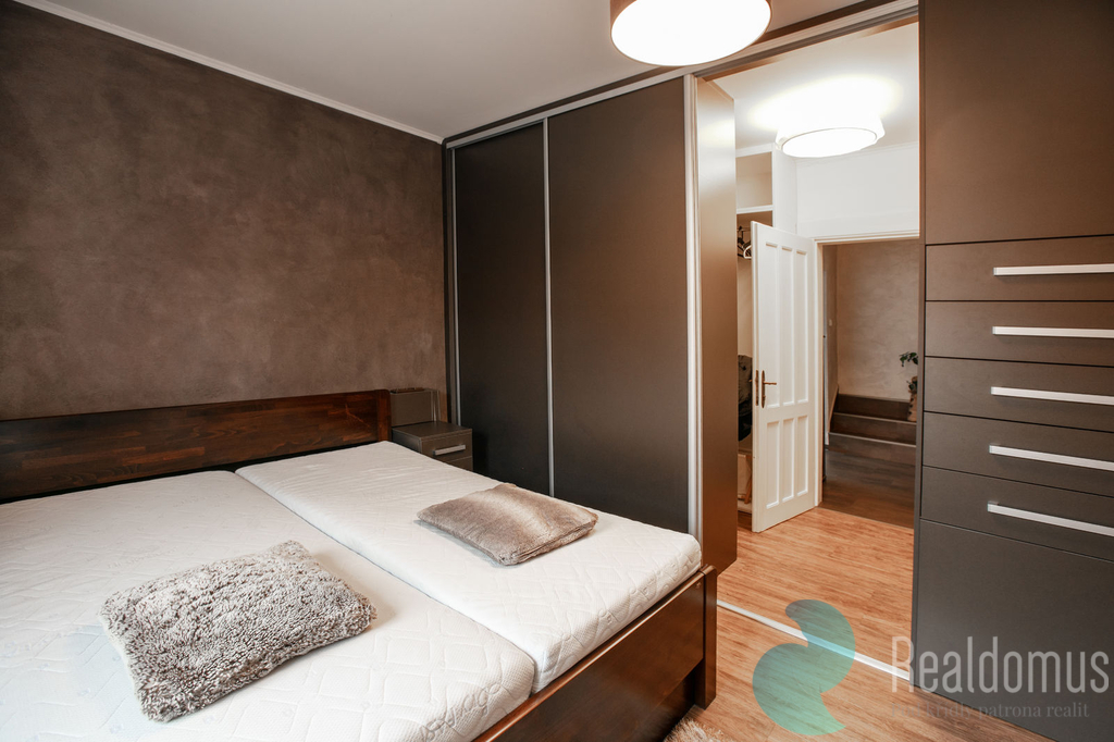 Realdomus zprostředkuje pronájem přízemí rodinného domu v klidné části Českého Brodu, v ulici Ruská. Tento rohový cihlový dům nabízí 2+1 o velikosti 101 m2 s přilehlou zahradou. Dům je zateplený s plastovými okny. Vytápění plynem. Nainstalovaná i klimatizace na horké letní dny. Moderní interiér domu zahrnuje prostornou chodbu s vestavnou skříní, moderní koupelnu s WC a sprchovým koutem, ložnici s velkou šatnou, technickou místnost pračkou, sušičkou a s technickou koupelnou. Kuchyň je plně vybavena, včetně myčky nádobí, plynová varná deska a elektrická trouba, americká dvoukřídlá lednice s chlazením vody na dveřích a mrazákem. Obývací pokoj poskytuje pohodlí pro setkání s přáteli. Nechybí ani rozsáhlý sklep. Udržovaná zahrada s jezírkem a prostornou pergolou s venkovní kuchyní zpříjemní letní dny.