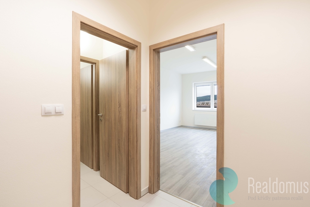 REALDOMUS Vám zprostředkuje pronájem reprezentativní kanceláře v obchodním centru umístěném v Českém Krumlově o celkové výměře 69,43 m². Nabízená kancelář je umístěna v 1.patře bez výtahu. Dispozice prostoru viz. přiložený půdorys. Kancelář orientovaná na severozápad s příjemným výhledem do zeleně. Moderně řešené interiéry s plovoucí podlahou ve výborném stavu. Reprezentativní a dobře dostupné místo u hlavní silnice s jedním parkovacím stáním.