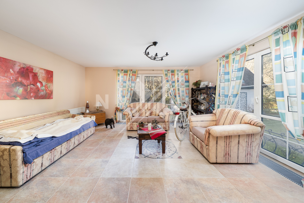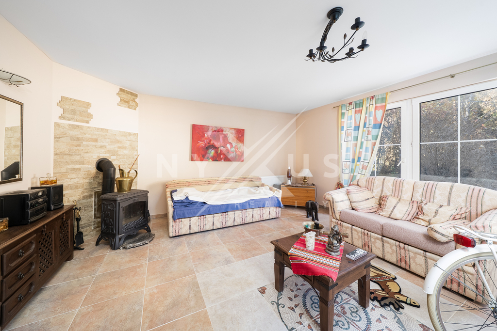 Na pozemku o ploše 3 334 m² se nachází také zateplený dům pro hosty o užitné ploše 56 m², který je vybaven obývacím pokojem, finskou saunou, sprchou, toaletou a samostatným pokojem pro hosty. Od brány vede příjezdová cesta k domu, kde je i možnost pro parkování vozidel. Nechybí ani venkovní posezení určené pro grilování. Součástí pozemku je také bazén a vířivka, které zajišťují komfort a možnosti relaxace. Zeleň v podobě vzrostlých stromů a keřů, které poskytují přirozené zastínění i soukromí.