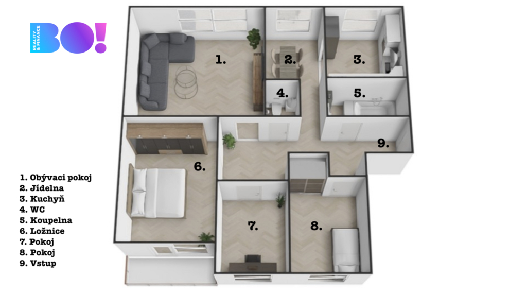 nemovitosti - BO! reality a finance s.r.o. (IČ 03739741) se zájmem o jeho služby. Tato společnost je součástí seskupení/sítě/franšízového modelu realitních kanceláří, jejich seznam můžete zobrazit kliknutím na tento odkaz.