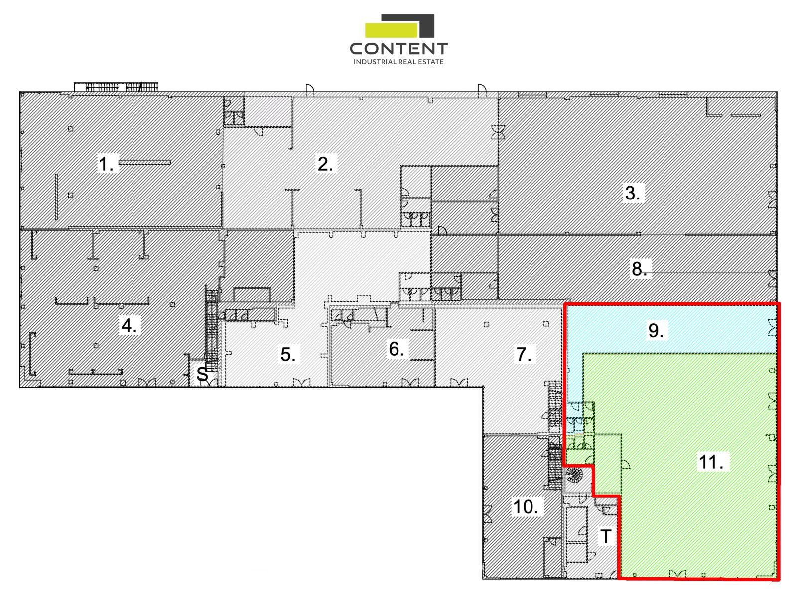 V zastoupení majitele a bez provize nabízíme prostory o celkové velikosti 633 m², které jsou vhodné pro skladování, prodejnu či showroom. Nachází se v komerční budově nedaleko dálnice D1, EXIT 6 a 8. Jedná se o pronájem dvou jednotek (č. 9 a 11).