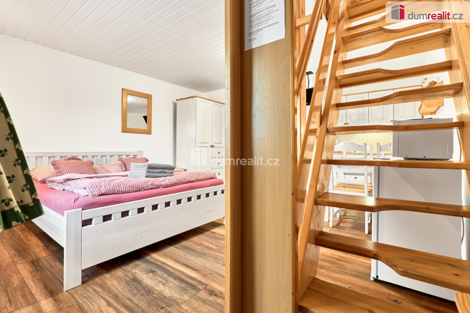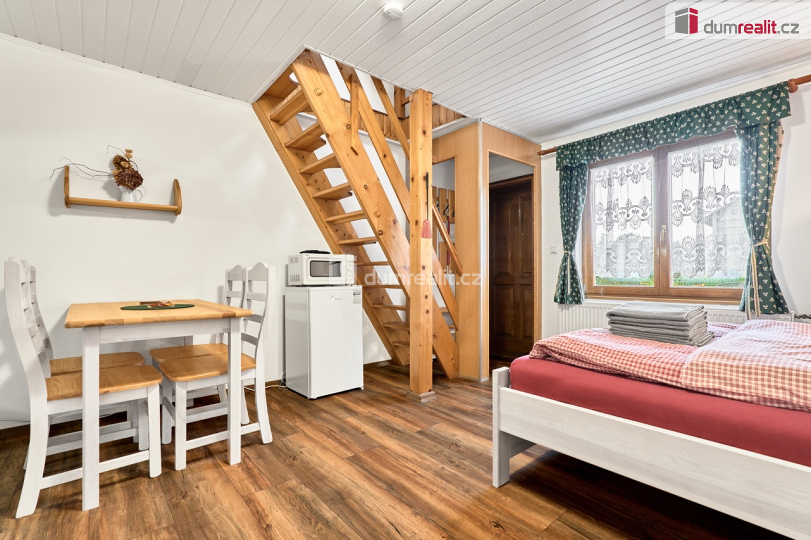 Velkou výhodou je možnost rozšíření – půdní prostor je připraven pro vybudování dalších apartmánů, čímž lze výrazně navýšit kapacitu a výnos.