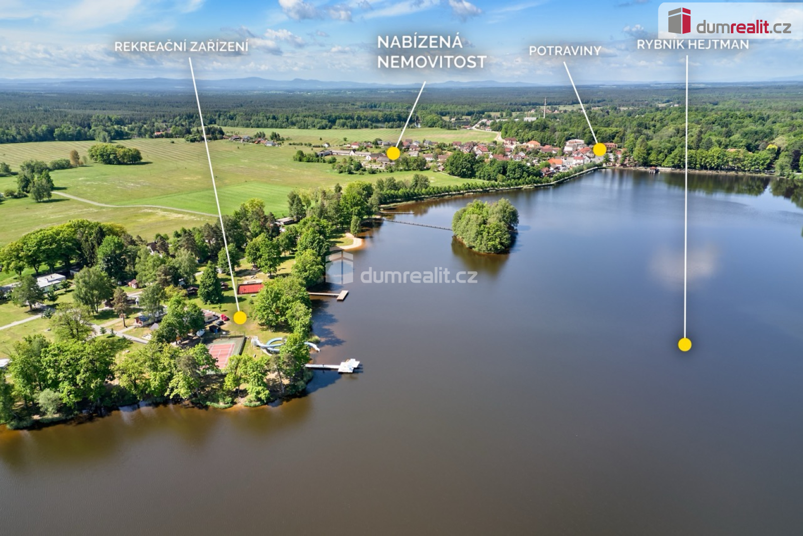 Nemovitost se nachází v klidné a vyhledávané lokalitě s výbornou dostupností k rekreačním, kulturním i přírodním cílům. V docházkové vzdálenosti je rybník Hejtman s pláží a toboganem, historický zámek d’Este a v dosahu několika minut autem také lázeňské město Třeboň.