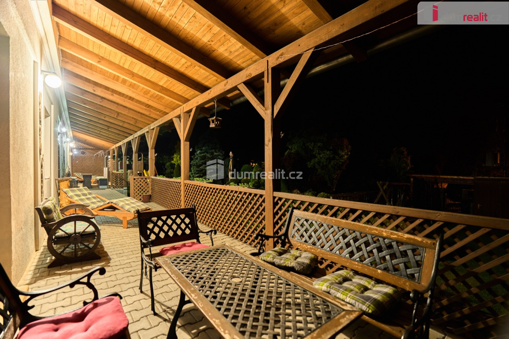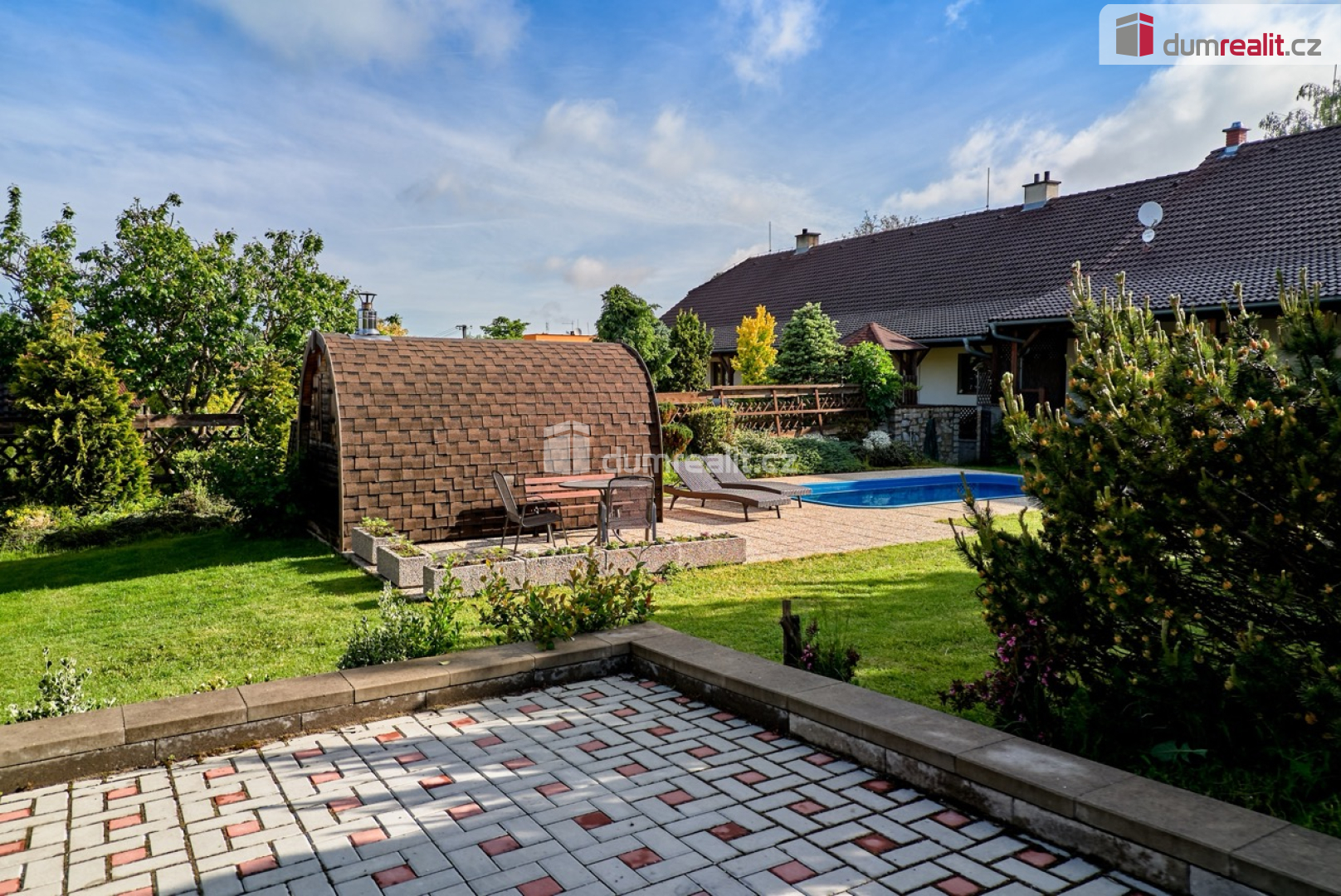 Na pozemku se nachází okrasná zahrada, pergola, gril, dětské hřiště a osm parkovacích míst. Objekt je napojen na elektřinu, studnu (s možností připojení na obecní vodovod), kanalizaci a plyn je přiveden na hranici pozemku. K vytápění slouží elektrokotel a tepelné čerpadlo. V domě jsou tři bojlery (750 l, 120 l, 100 l). Energetickou soběstačnost podporuje fotovoltaická elektrárna, díky které se roční náklady na elektřinu pohybují kolem 20–25 tisíc korun.