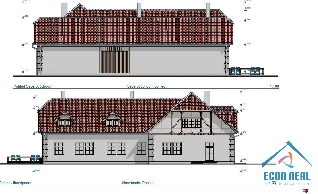 Půda je vyčištěná od dlažby a podsypu. Jímka je řešena s přepadem k čističce sousední nemovitosti, v návrhu řešení jsou i solární panely a tepelná čerpadla , která ze stavby dělají tzv. "ostrov" bez jakékoliv potřeby z venčí. Nemovitosti nejsou součástí obchodního majetku. Pro více informací kontaktujte makléře nemovitosti. Stavební povolení v ceně bude předáno dle potřeb zájemce. Možné využití nemovitostí jak pro podnikání, tak i pro vlastní bydlení.