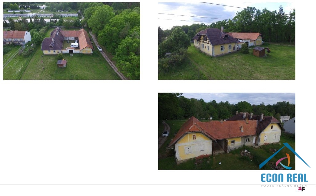 V nádherné krajině lesů, luk a rybníků, v blízkosti Třeboně a jejích krás a v přímém dosahu turistických a cyklistických tras, si Vám společnost ECON REAL dovoluje nabídnout prodej bývalé zemědělské usedlosti v obci Lutová, Chlum u Třeboně, s prostornou zahradou, připravené k realizaci investičního záměru apartmánového bydlení nejen na prázdniny, a to ve vyhledávaném okresu Jindřichův Hradec. Nemovitost s přilehlými pozemky, v blízkosti romantických rybníků a v zalesněné krajině, se prodává včetně funkčního 80m vrtu na dodávku vody, stávajícího vybavení a části materiálu na přestavbu.