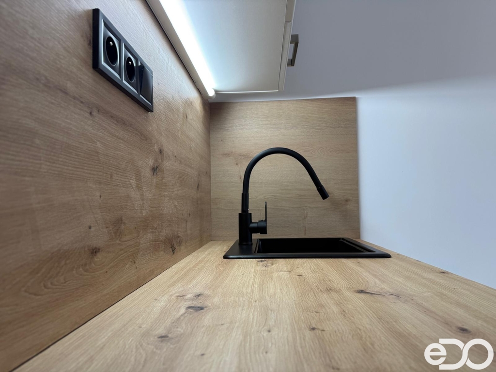 kuchyňská linka (indukční varná deska, digestoř, mikrovlnná trouba)