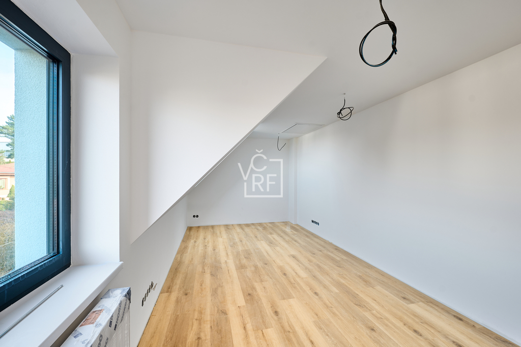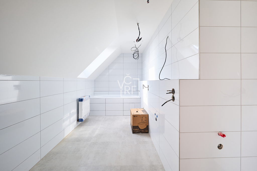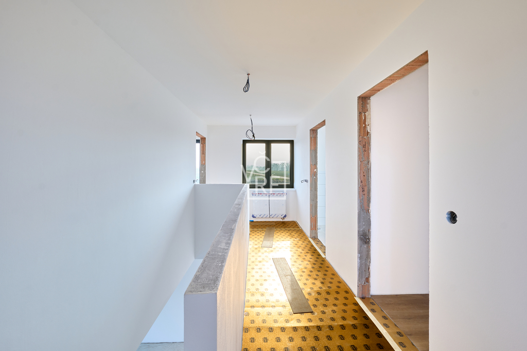 Přípojky: vodovod obecní, kanalizace obecní, el.230/400V, vytápění a ohřev TUV kondenzačním plynovým kotlem se zásobníkem, internet. Vysoký standard provedení.