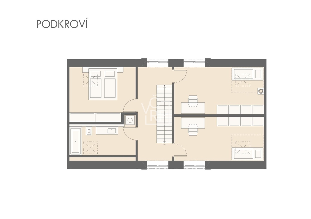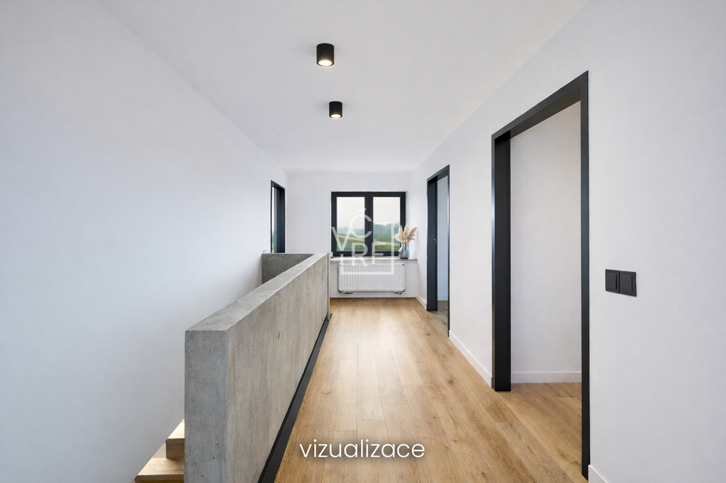 2.NP chodba, 3 obytné místnosti, koupelna s WC. K objektu náleží podíl na společné příjezdové komunikaci včetně 2 parkovacích stání před objektem.