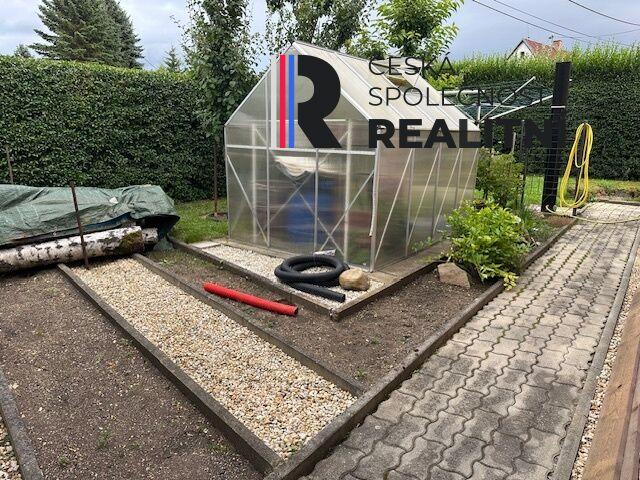 Zahrada je upravená a pečlivě udržovaná. Najdete zde záhony, skleník, chodníčky, živý plot i vzrostlé stromy, které zajišťují příjemné soukromí.