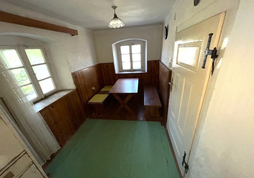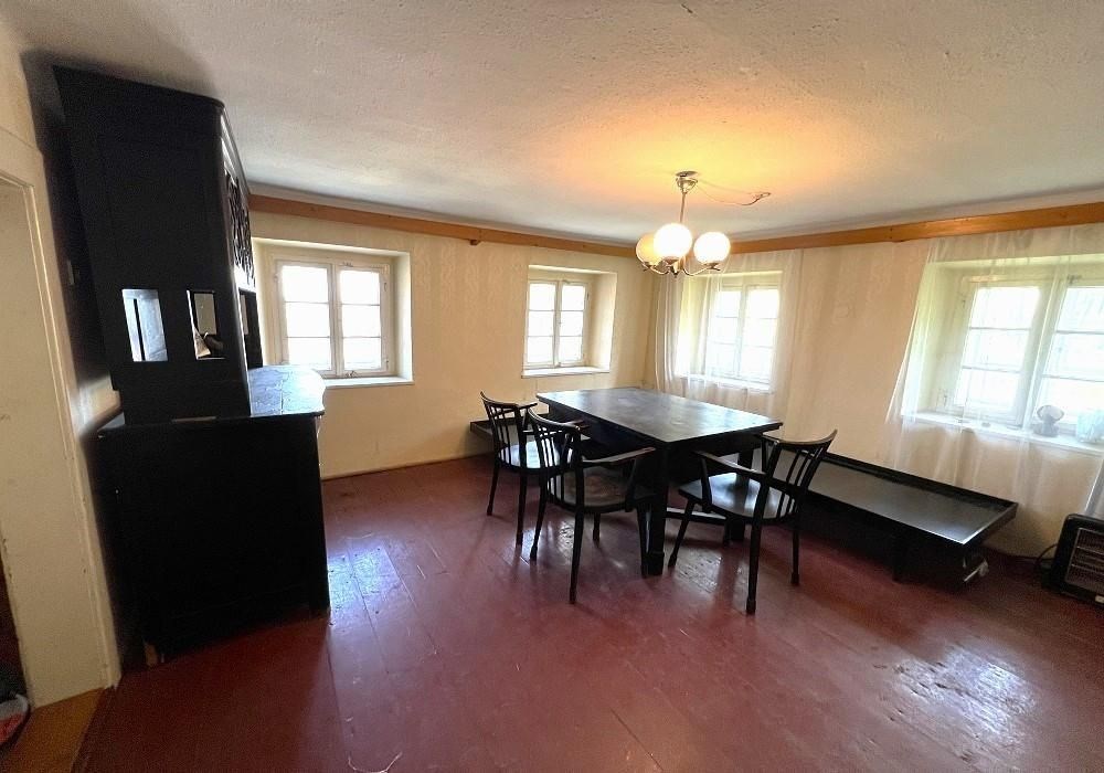 Samostatně stojící objekt vesnického domu - chalupy s hospodářskou přístavbou a navazujícími pozemky - zahradou o celkové výměře 856 m2 v klidné okrajové části obce Chodov navazující na přírodní lokalitu CHKO Český Les. Přízemní, částečně podsklepený objekt historické chalupy - původní zemědělské usedlosti, zděné konstrukce o dispozici obytných prostor 3KK s příslušenstvím v přízemní části objektu, 2x sklepními prostorami a volnými podkrovními prostorami s možností realizace obytné vestavby. Objekt je provozně vybaven a částečně zařízen jako původní venkovské stavení se zachovalými historickými stavebními prvky a původní konstrukcí. V průběhu let 1970-80 byly vnitřní prostory objektu částečně modernizovány, adaptovány do současné podoby a následně užívány k přechodnému rekreačnímu bydlení. Chalupa nyní již delší dobu není užívána ke svému účelu, sezónně udržována, připravena k okamžitému předání, užívání a zahájení modernizace a rekonstrukce dle představ nového vlastníka. Na objekt navazují vlastní pozemky - zahrada s částečným oplocením, původními porosty, vzrostlými ovocnými a náletovými dřevinami s venkovní klidovou a užitkovou plochou se zpevněnými venkovními úpravami a tarasy s vedlejší stavbou původního parkovacího přístřešku s okolní zástavbu vesnických rodinných domů. Nemovitosti jsou situovány ve svažitém terénu se zbudovanými terénními tarasy s orientací pozemků na jihozápad, navazujících na příjezdovou komunikaci, dostupných 2x z veřejné zpevněné komunikace s vedením kompletních inženýrských sítí. Nabízené nemovitosti jsou vhodné pro zájemce, kteří hledají stylovou venkovskou chalupu k provedení rekonstrukce dle vlastních představ, s potenciálem rozšíření obytných prostor, možností následného užívání k rekreačnímu i trvalému bydlení v klidné přírodní lokalitě v podhůří CHKO Český Les v chodské obci v blízkosti státních hranic CZ/SRN s dostupnost základních služeb a infrastruktury, cca 6 km od okresního města Domažlice s kompletní vybaveností. Předností nabízených nemovitostí je historický charakter, velikost a dispozice vnitřních prostor objektu vesnického stavení s potenciálem možného rozšíření obytných prostor, velikost pozemku, lokace v klidné okrajové části obce v přírodní lokalitě CHKO Český Les a možnost napojení na kompletní inženýrské sítě. Dispozice: sklep - vstup, 2x provozní skladovací prostor (bývalá maštal se sklepem). Přízemí - vstup, chodba, obytná místnost s krbovými kamny, místnost s kuchyňským koutem a jídelnou, prostor původní ložnice, sprchový kout, původní pec, ext. skladovací prostor, suché WC, podkroví - schodiště, volný půdní prostor k případné obytné vestavbě. Přístup z veřejné zpevněné komunikace s 2x vjezdem na pozemek, elektřina 220/380, napojeno na veřejný vodovod, odkanalizováno do jímky s možností okamžitého napojení na veřejnou splaškovou kanalizaci, napojeno na rozvod plynu, v dosahu telekomunikačních rozvodů. Vytápění : lokální na tuhá paliva (krbová kamna).