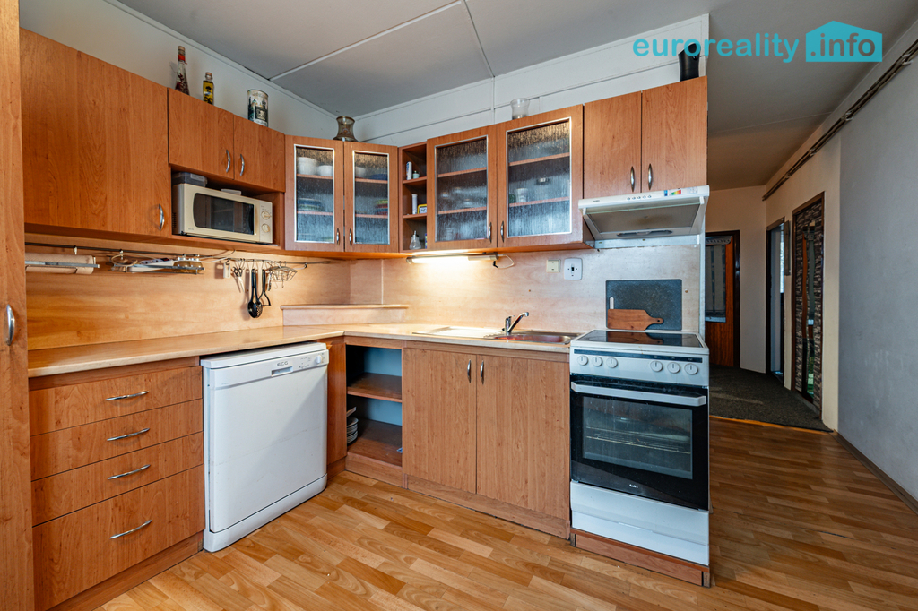 Nabízíme k prodeji bytovou jednotku o dispozici 3+1 se zasklenou lodžií ve 2. patře panelového domu v klidné části obce Chodský Újezd. Podlahová plocha bytu činí 82,81 m2. Bytová jednotka je převážně v původním, avšak zachovalém stavu. Podlahy jsou tvořeny PVC, plovoucí podlahou a koberci. V celém bytě včetně lodžie byla osazena plastová okna trojsklo. Okna jsou situována na jižní a severní stranu. Topení zajišťuje plynový kotel, o ohřev vody se stará elektrický bojler. K bytu náleží prostorný sklep o výměře 4.48 m2. bytový dům prošel v nedávné době revitalizací - zateplení, nové stupačky atd. U domu je možnost bezproblémového parkování. V obci se nachází základní občanská vybavenost. Kompletní občanská vybavenost se nachází v nedalekém městě Tachov a městě Planá. Bližší informace vám sdělíme v naší realitní kanceláři. S financováním vám zdarma pomůžeme.