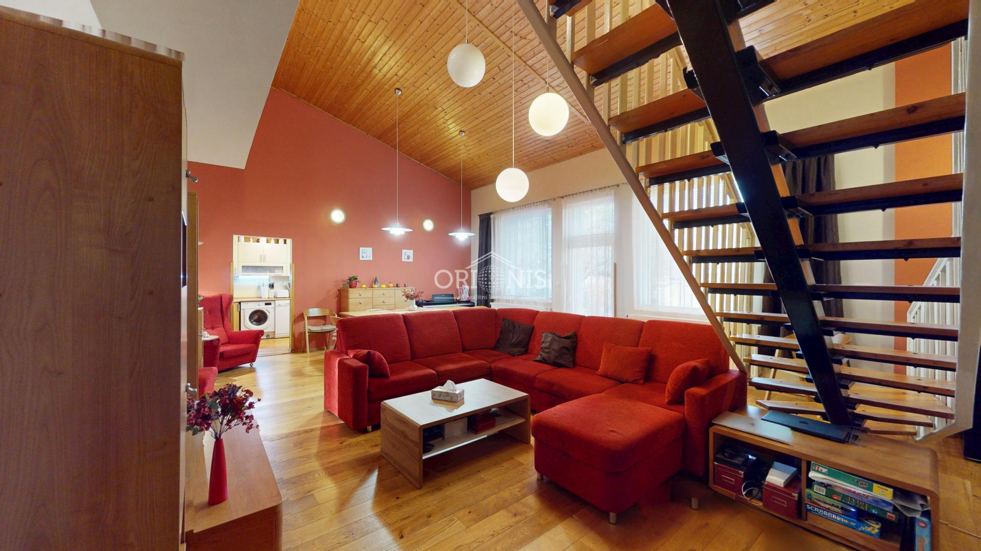 Přízemí tvoří prostorný a světlý byt s velkým obývacím pokojem a přímým vstupem na zahradu.