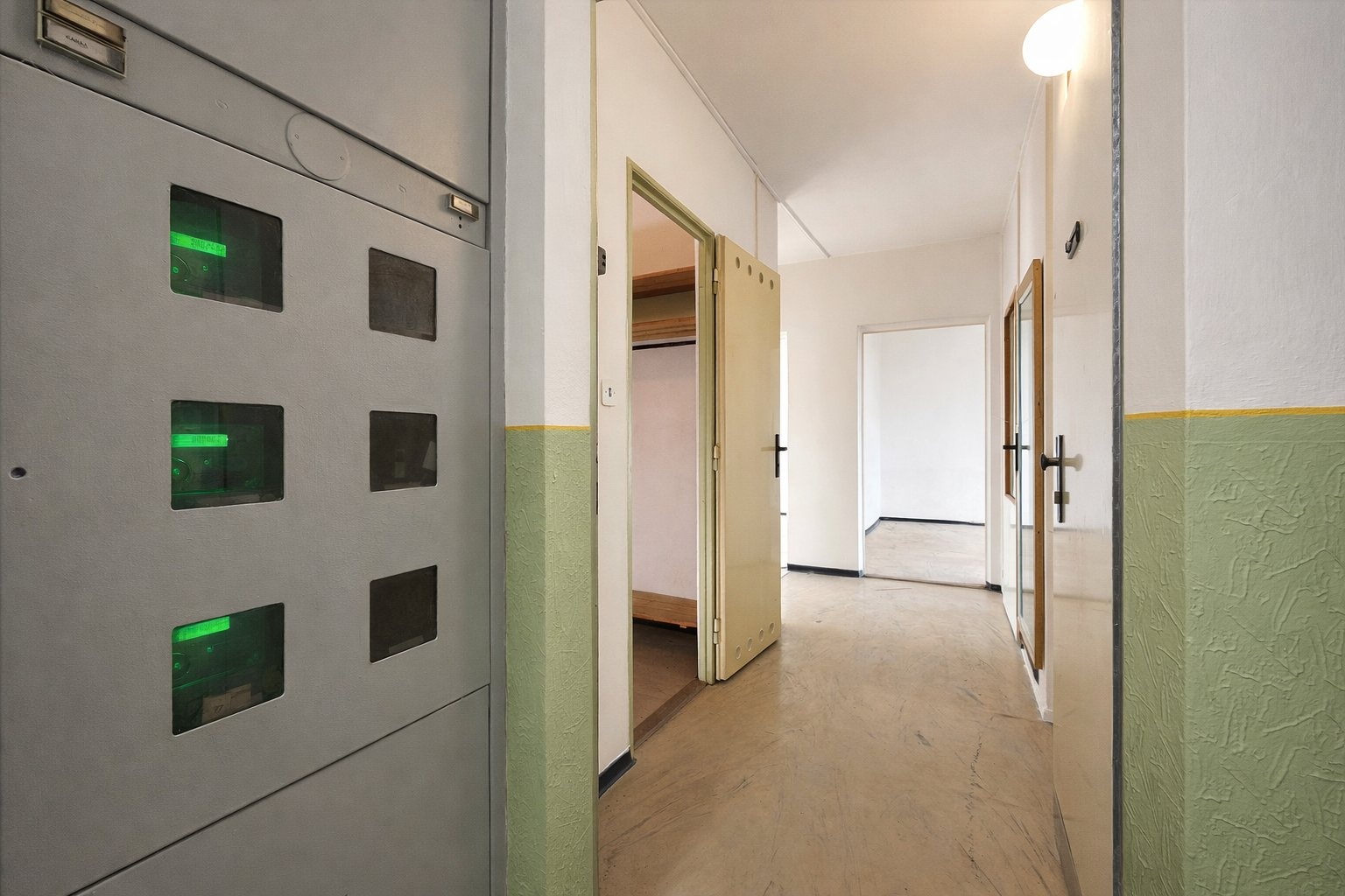 Bytová jednotka se skládá z předsíně, původní zděné šatny, umakartového koupelnového jádra, kuchyně a tří pokojů. K bytu dále náleží sklepní koje a velmi praktická komora v mezipatře, která výrazně zvyšuje uživatelský komfort a úložné možnosti.