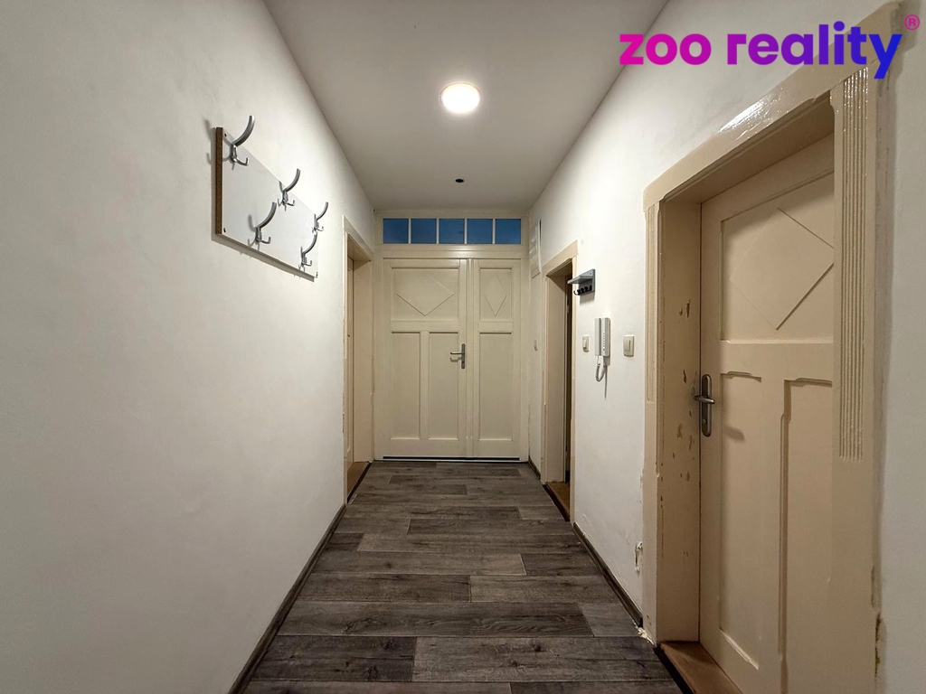 Nachází se zde předsíň, zděné koupelnové jádro se sprchovým koutem, umyvadlem a toaletou, komora ve které je prostor na pračku, kuchyň s kuchyňskou linkou a prostorem pro jídelní část. Dále zde najdeme dva samostatné pokoje. Vytápění a ohřev vody je zajištěno plynovým kotlem. K bytu náleží velká sklepní kóje a lze využívat zahradu za domem.