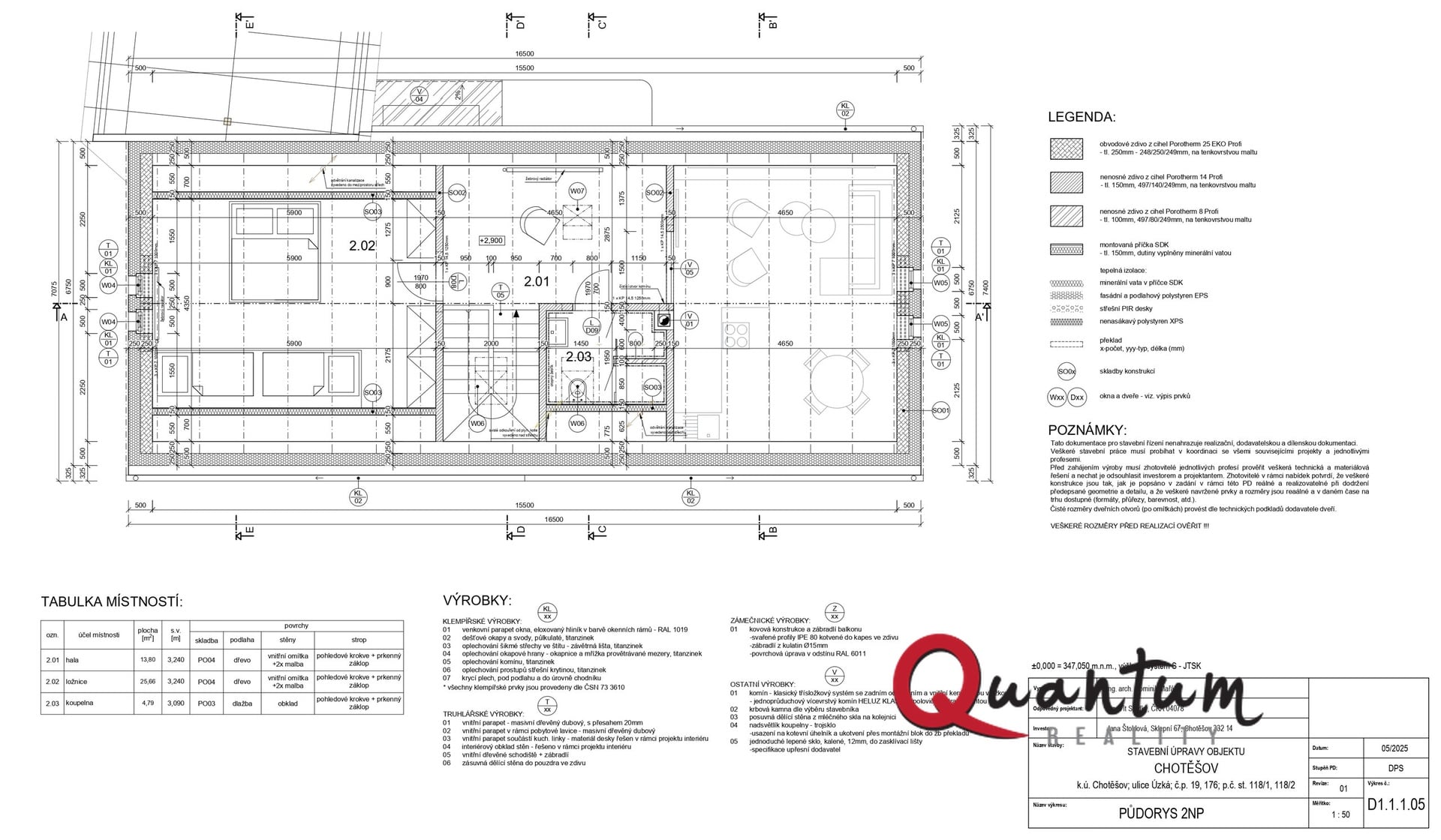 Součástí prodeje je kompletní projektová dokumentace včetně vydaného stavebního povolení, což výrazně snižuje časovou i administrativní náročnost přípravy a umožňuje okamžité zahájení realizace.