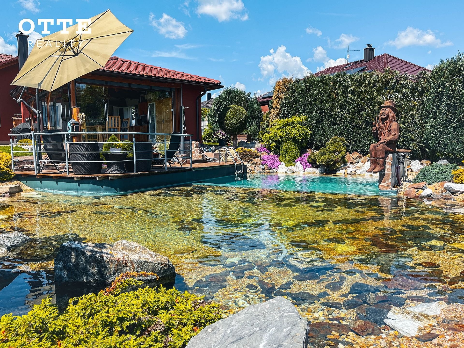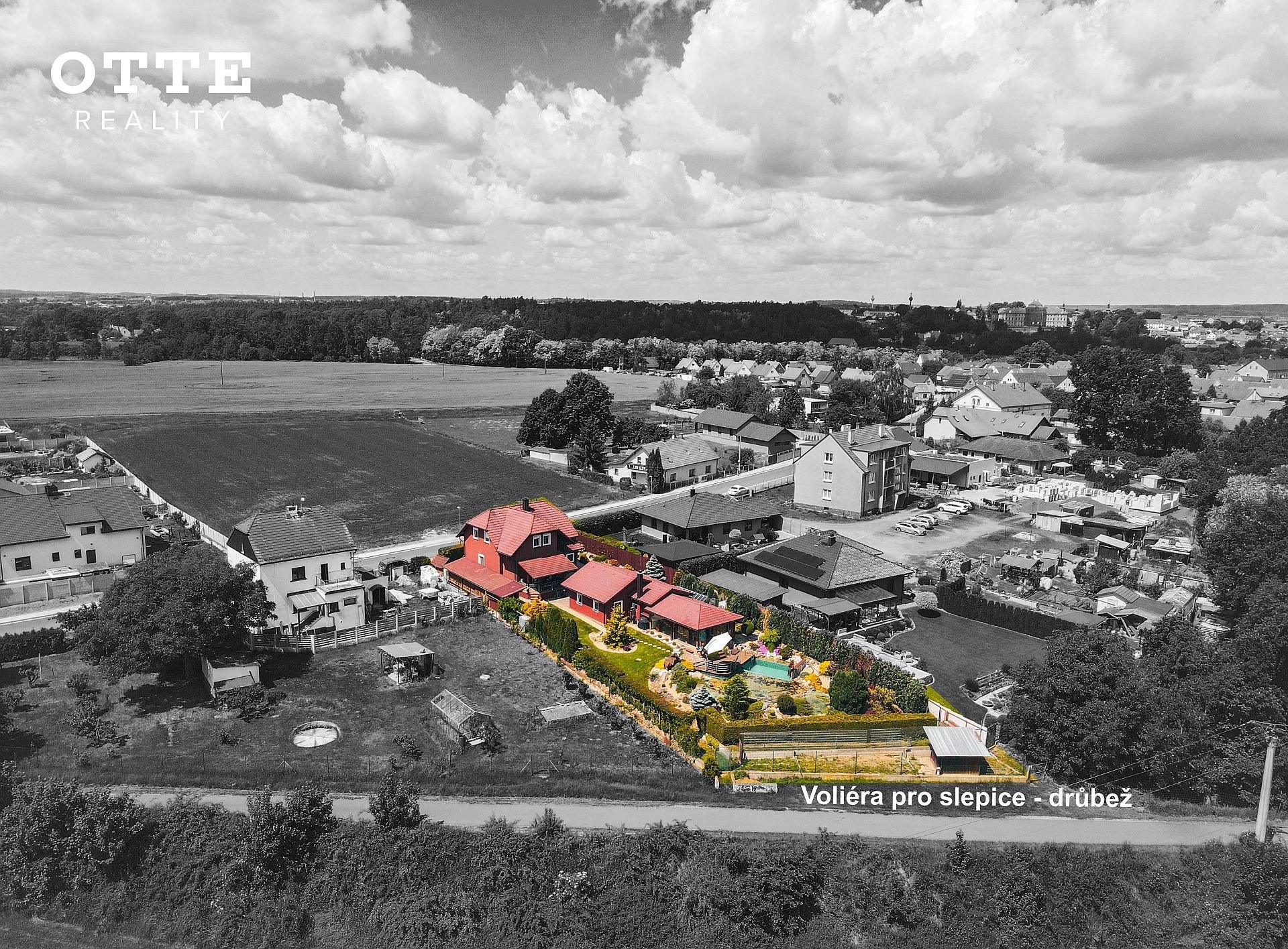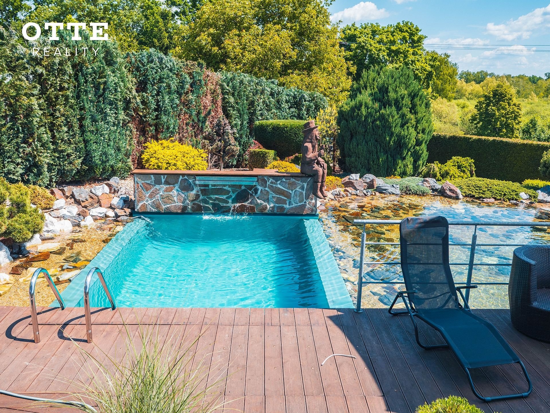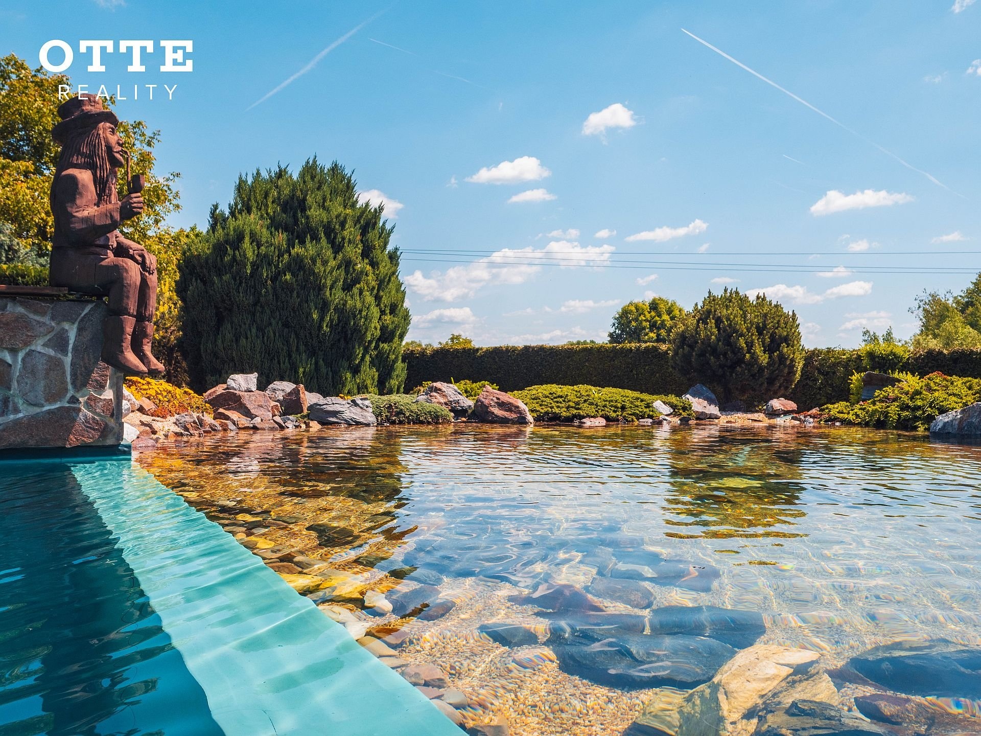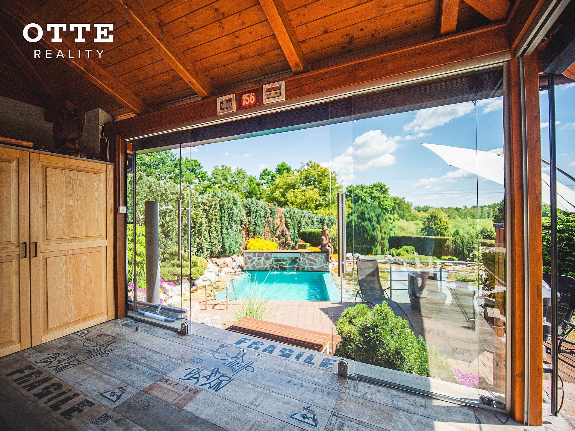 Rodinný dům s bazénem, rybníčkem i obrovskou zastřešenou pergolou vybavenou krbem i kuchyňskou linko
