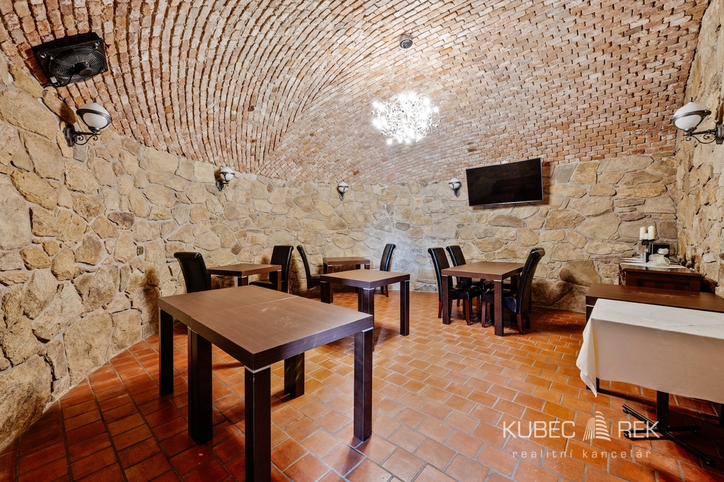 V přízemí se nachází restaurace s plně vybavenou kuchyní a prostorný salonek s kapacitou až 100 míst. Tyto prostory jsou ideální pro pořádání svateb, oslav nebo firemních akcí.