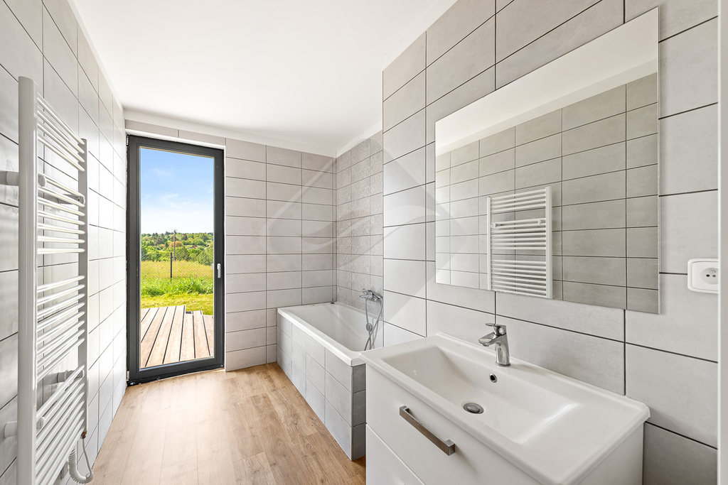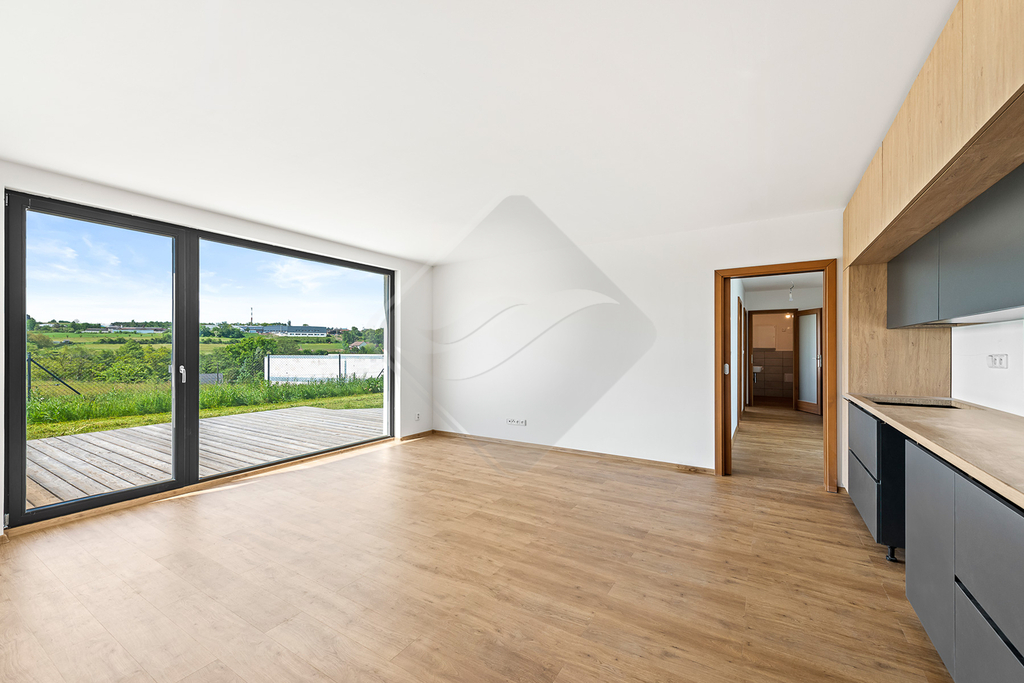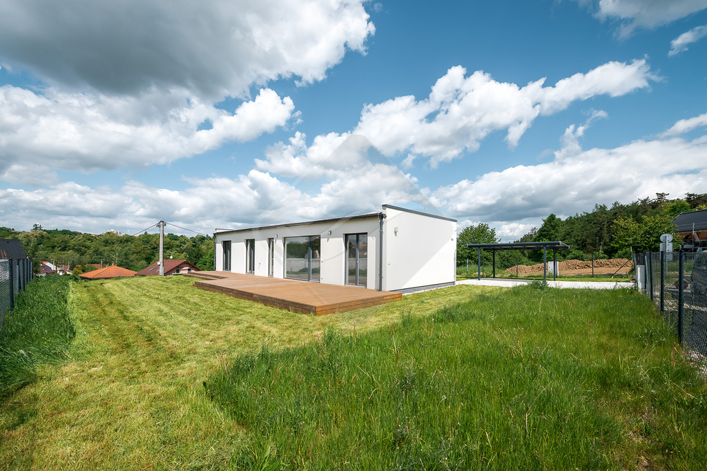 Dřevostavba s difuzně otevřenou konstrukcí na základové desce, s pohodlnou dispozicí 4kk na velkém mírně svažitém pozemku s výhledem do zeleně nabízí prostor pro Vaše rodinné bydlení. Dostupnost Plzně i dálnice D5 a klidné prostředí jsou hlavními benefity této novostavby. Jednoduchý obdélníkový půdorys nabízí dostatek úložných prostor. Centrální prostor na téměř 30ti metrech čtverečních s vybavenou kuchyňskou linkou a francouzským oknem je orientován na dřevěnou terasu o velikosti 40m2 , která je po celé straně objektu. Tři samostatné pokoje nabízí dostatečný komfort všem členům rodiny, kvalitní plovoucí podlaha je samozřejmostí. Pokoje jsou přístupné z terasy i centrální předsíně s keramickou dlažbou. Samozřejmě jsou k dispozici sítě elektřina, městský vodovod, kanalizace, čistička odpadní vody. Technicky je provoz řešen centrální klimatizační jednotkou Samsung rozvod do každé obytné místnosti a podlahovým topením. Bohatě dimenzované jsou možnosti parkování, jedno kryté stání, jedno parkovací místo na pozemku a tři podél drátěného oplastovaného plotu jistě využijí i Vaše návštěvy, které dojedou po asfaltu téměř k domu. Pro domluvení prohlídky mne prosím kontaktujte.