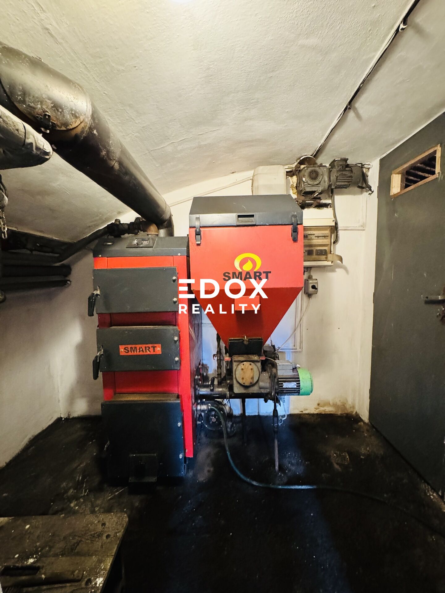 Dům je částečně podsklepen. Sklep je v perfektním stavu. Zde se nachází kotel sloužící k vytápění domu s automatickým podáváním paliva na dřevo, uhlí či pelety.